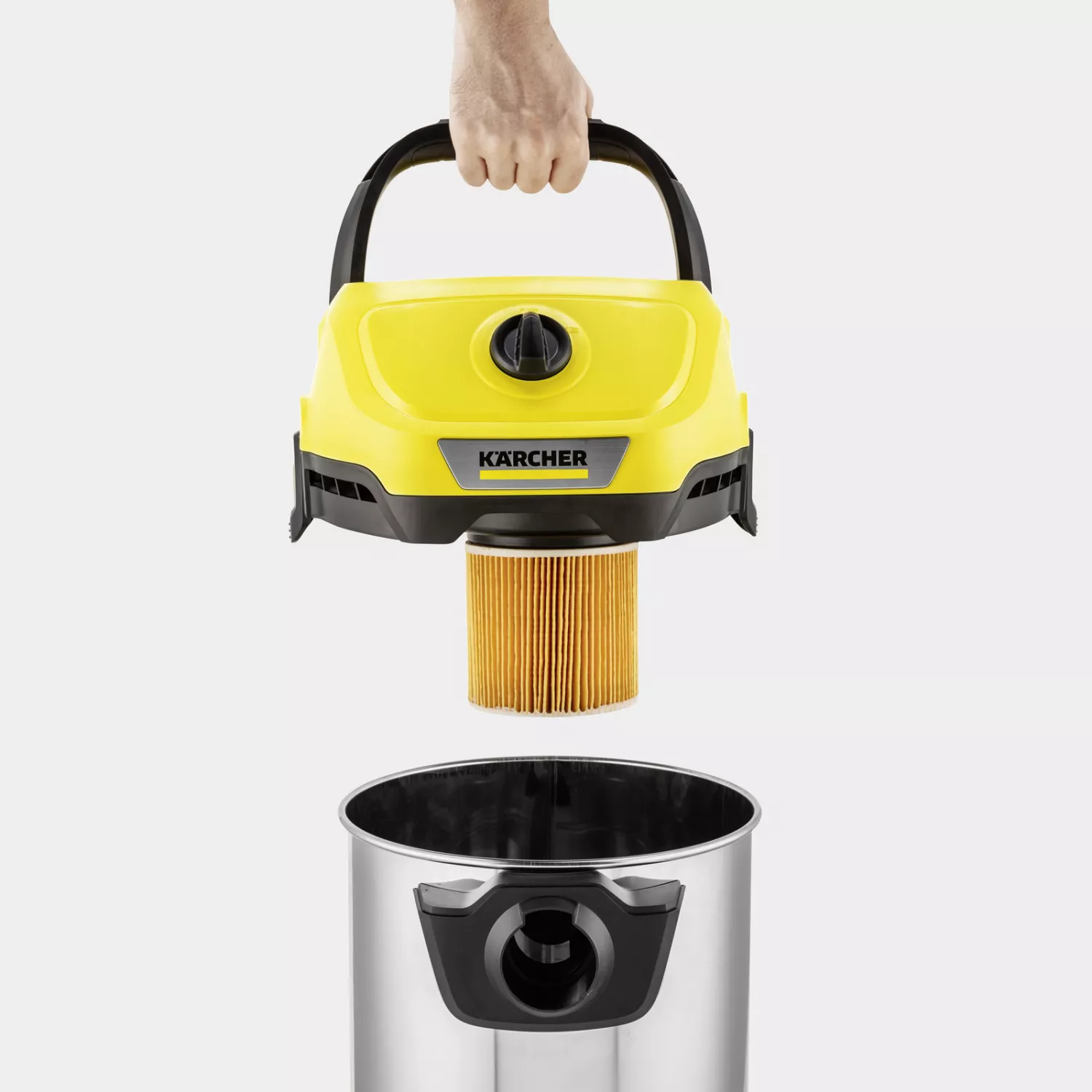 Aspirator industrial karcher wd 3-18 s v-17/20 battery li-ion / 18 v / 2.5 ah / 10 min, 225 w, 17 l, galben, negru