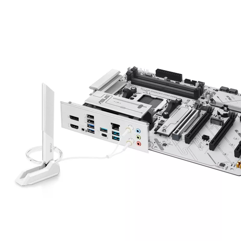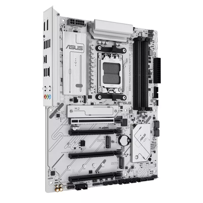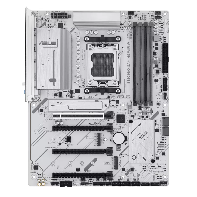 ASUS B850 MAX GAMING WIFI W, Socket AM5, AMD B850, 11Phases, Dual 4xDDR5-8000, APU AMD graphics, HDMI, DP, 4xPCIe 5.0 X16, 4xSATA3, RAID, 3xM.2 PCIe 5.0, 2xPCIe x1, Realtek 7.1 HDA, 2.5GbE LAN, WiFi6E/BT, 4xUSB3.2 Gen2(1C+3A), 5xUSB3.2(1C+4A), Aura S |