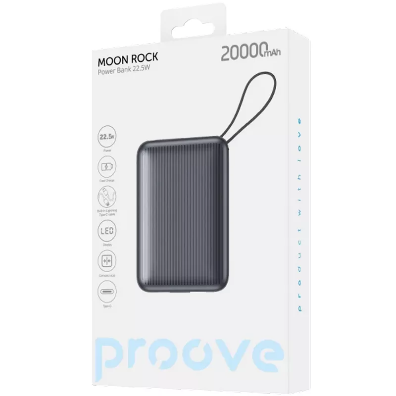 Power Bank 20000mAh Proove Moon Rock 22.5W, Gray |