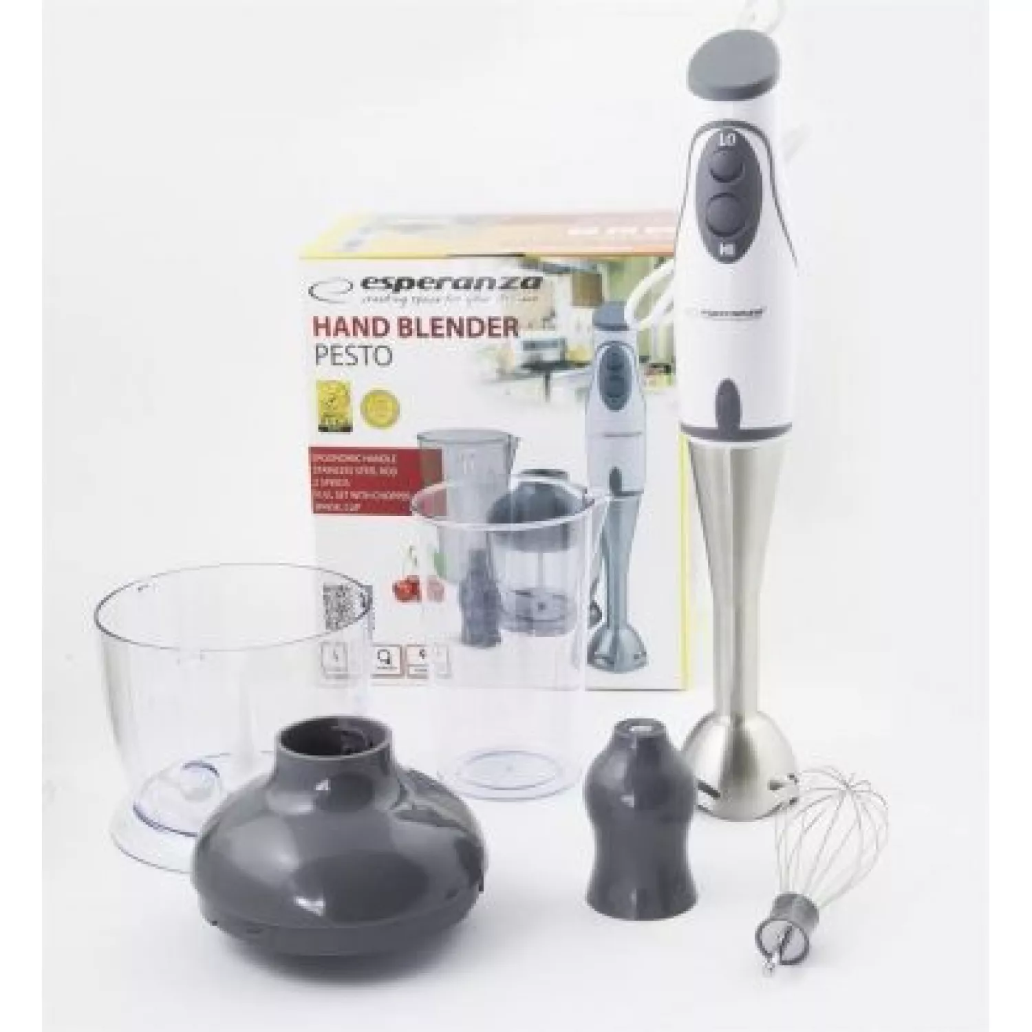 Caracteristici pentru Blender de mana ESPERANZA PESTO EKM003E, 450 W, 0.5 l, 2 trepte de viteza, Alb, Gri