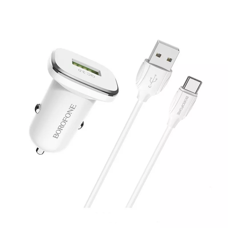 Incarcator masina borofone car charger with type-c cable bz12a lasting, white
