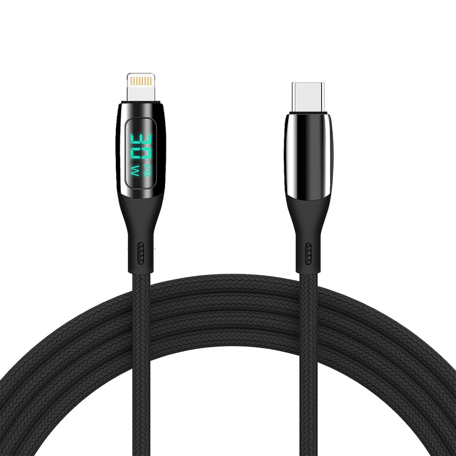 Helmet Cable Type-C to Lightning 30W 1.2m LED Display Series, Black