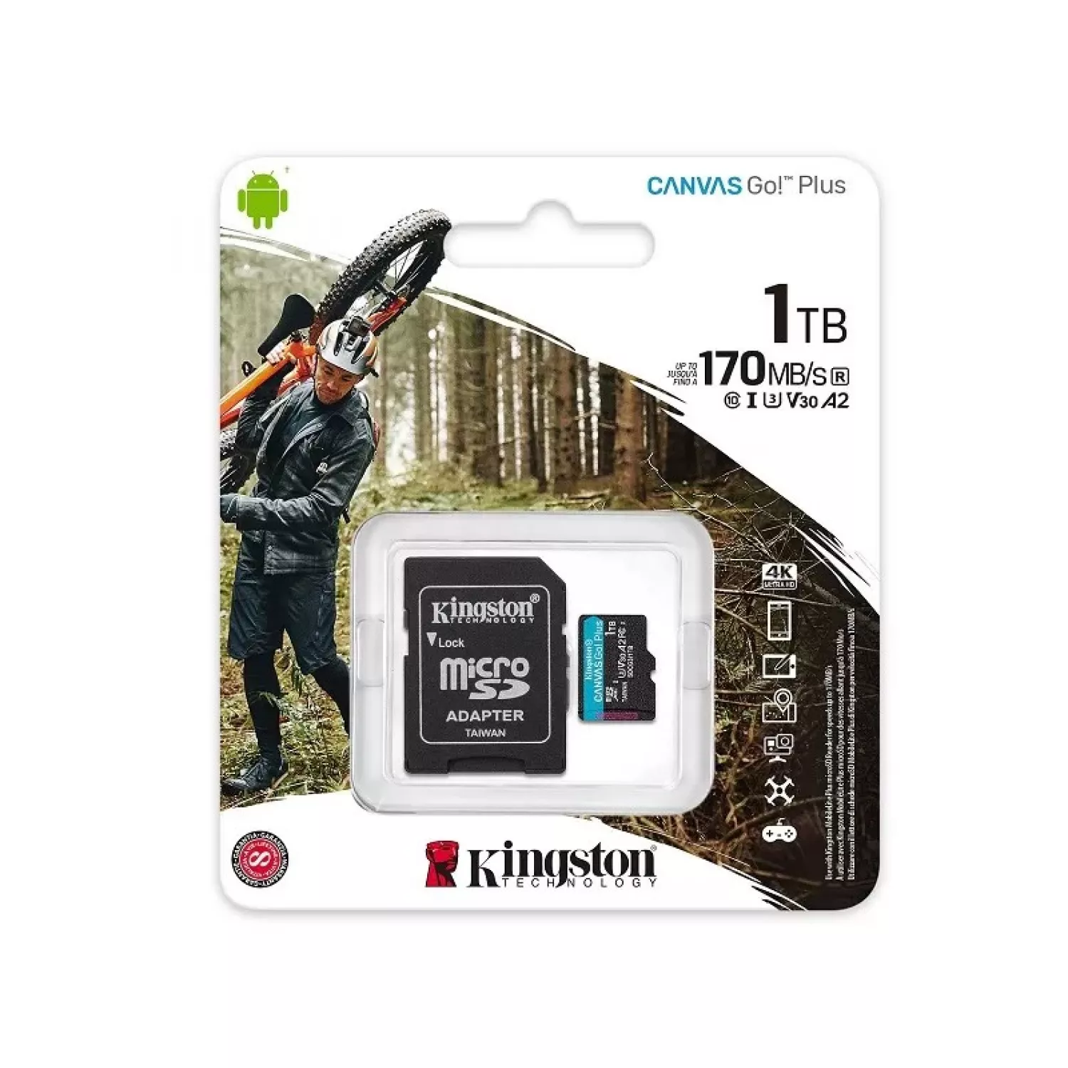 1.0TB MICROSD CLASS10 A2 UHS-I U3 (V30) CANVAS GO! PLUS, ULTIMATE, READ: 170MB/S, WRITE: 90MB/S, IDEAL FOR ANDROID MOBILE DEVICES, ACTION CAMS, DRONES AND 4K VIDEO PRODUCTION |