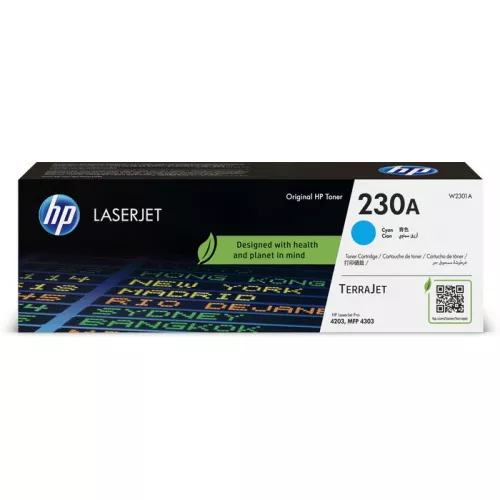 HP 230A Cyan Toner 1,800 pages for HP Color LaserJet Pro 4203dn, HP Color LaserJet Pro 4203dw, HP LaserJet Pro MFP 4303dw, HP LaserJet Pro MFP 4303fdn, HP LaserJet Pro MFP 4303fdw |