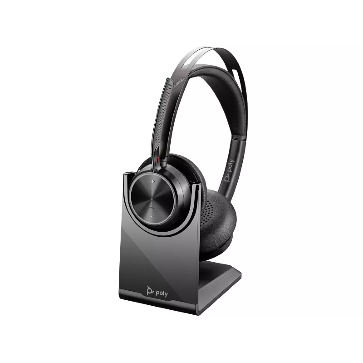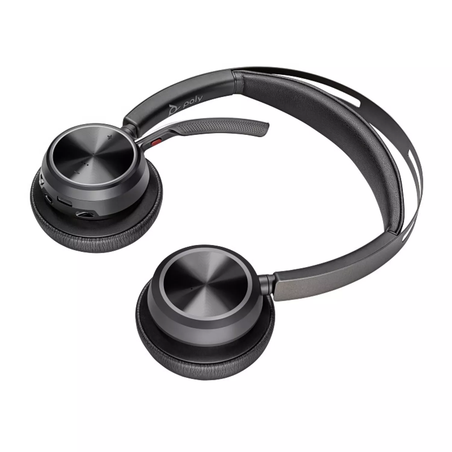 Casti cu fir si microfon poly poly voyager focus 2usb-c-c headset +usb-c/a adapter + charge stand, noise-cancelling dual-mic + acousticfence technology, 3 levels of advanced hybrid anc, up to 25 hours of wireless talk time, comfortable headband & ear cushions, carrying case, 1.5