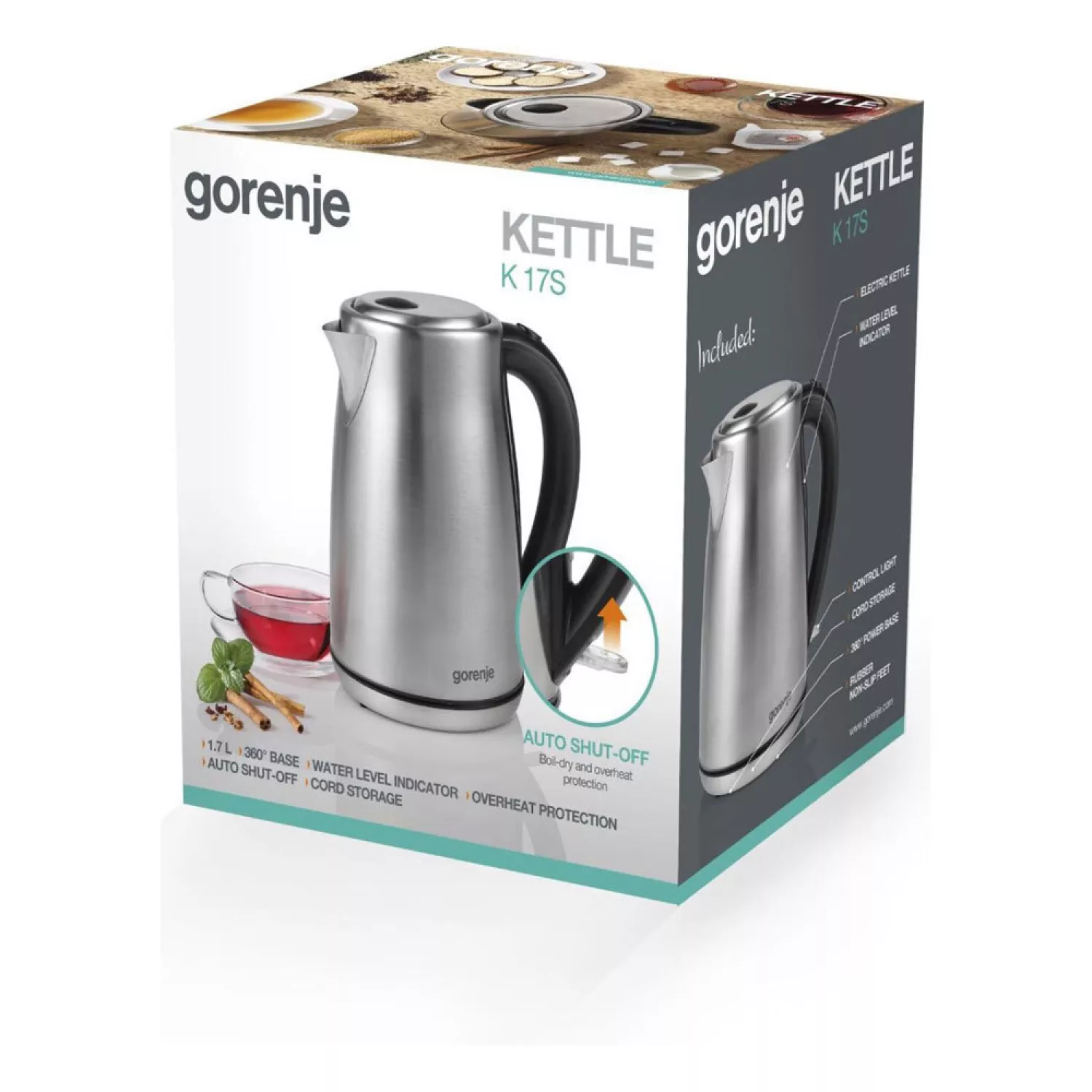 Caracteristici pentru Ceainic electric GORENJE K17S, 1.7 l, 2000 W, Inox, Argintiu