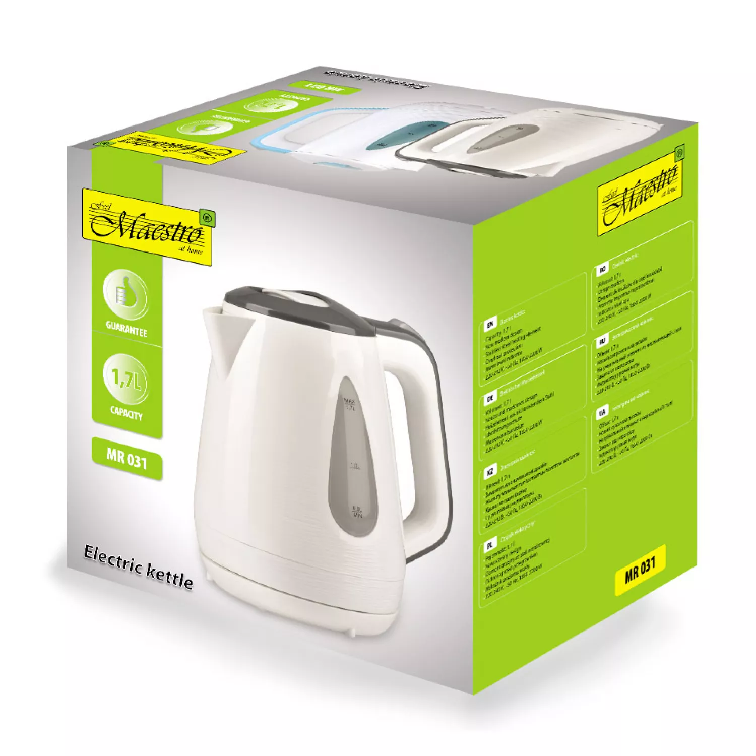 Caracteristici pentru Ceainic electric Maestro MR -031, 1.7 l, 2200 W, Plastic, Alb