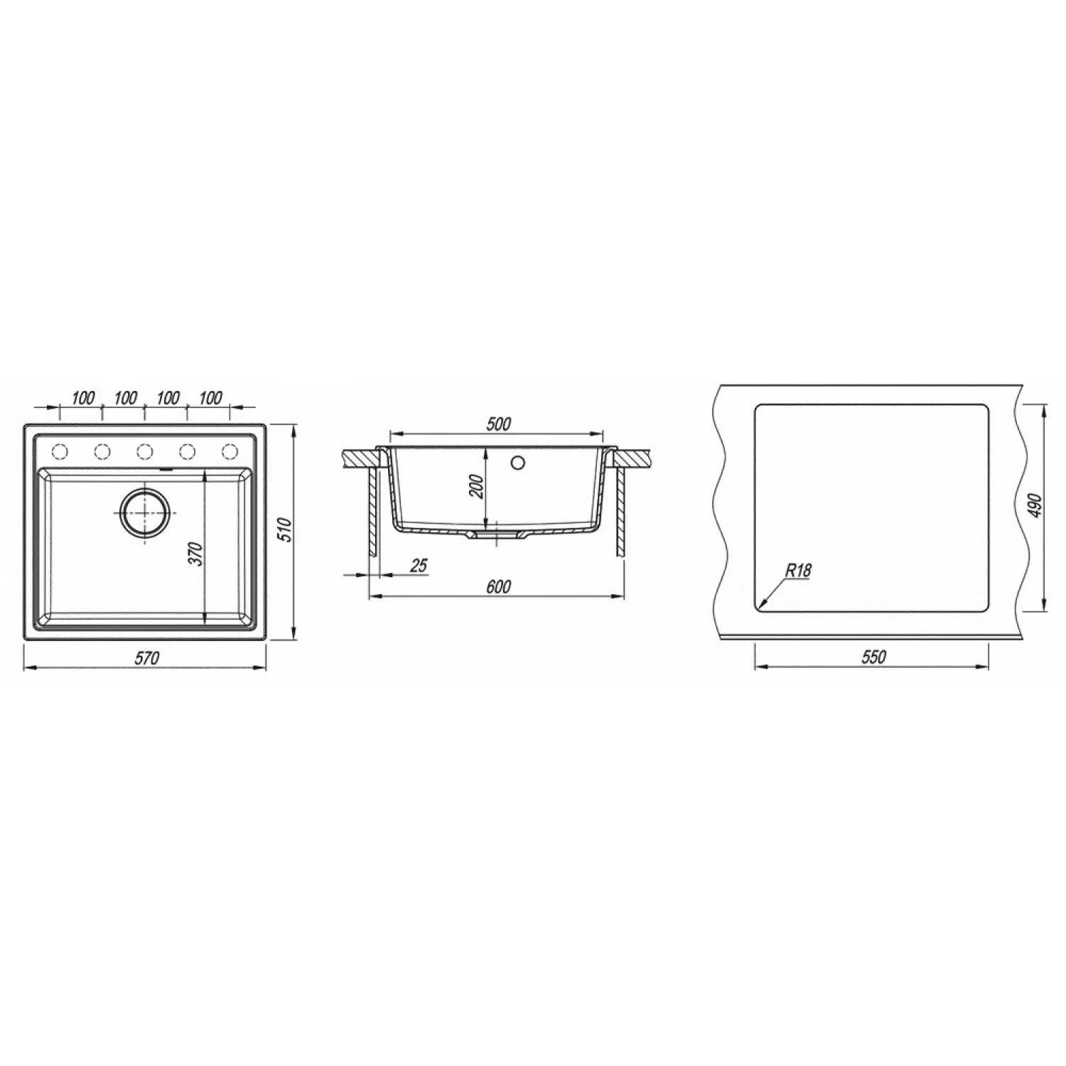 Caracteristici pentru Chiuveta Dr.Gans NICA 570, Granit compozit, Alb, 57 x 51