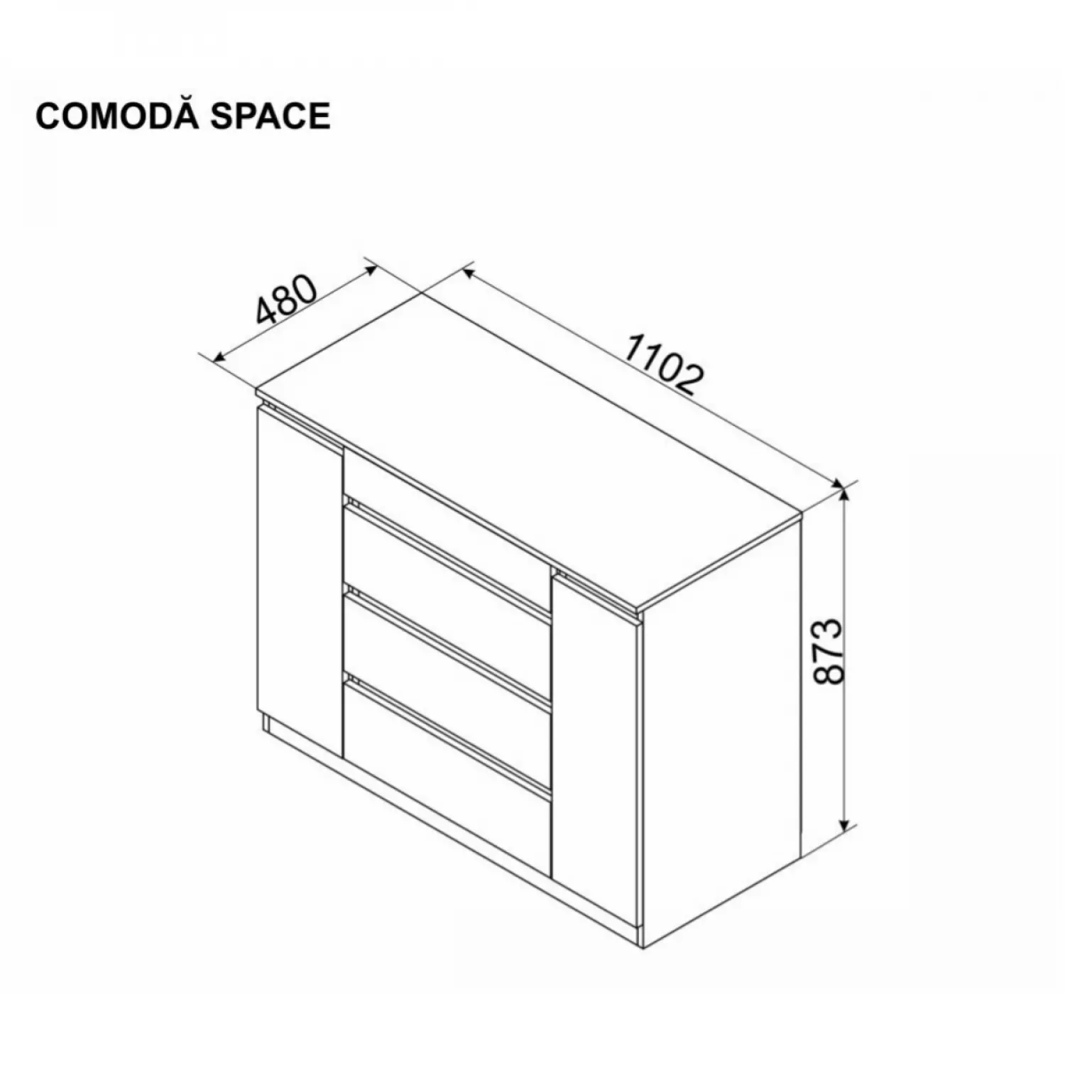 Caracteristici pentru Comoda Ambianta SPACE, Alb, 110.2x48x87.3