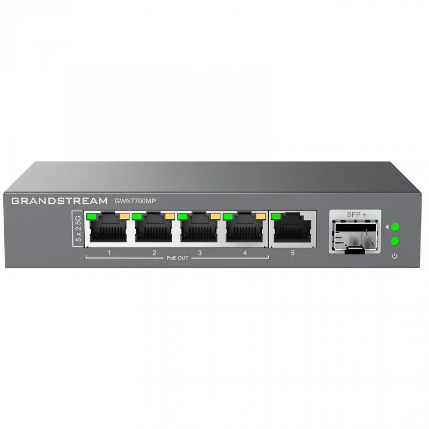 Comutator de retea grandstream .5-port 10/100/2500mbps switch grandstream "gwn7700mp", 1xsfp+ 1/10gbps, 4xpoe ports, budged 57w, steel case