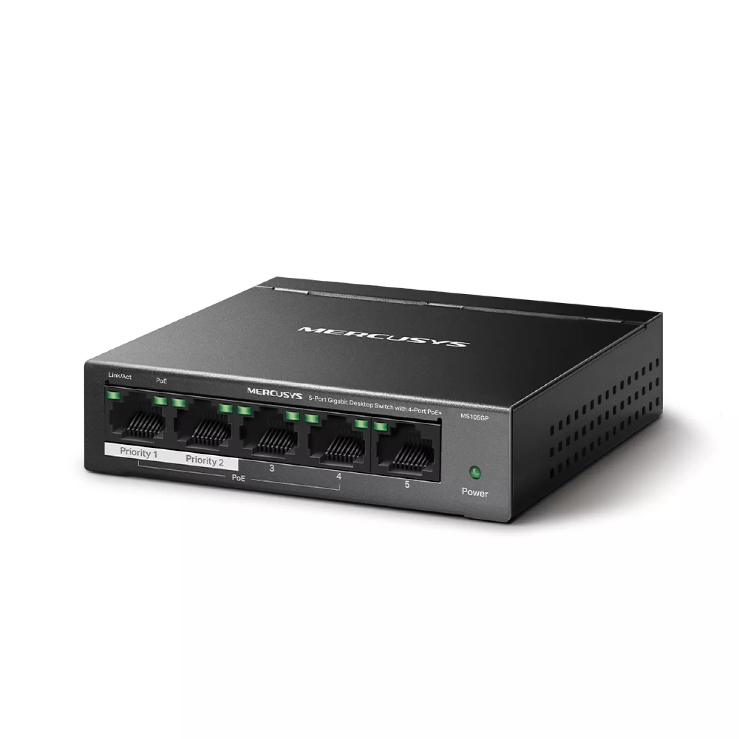 MERCUSYS MS105GP, 5-Port Gigabit Desktop PoE Switch, 5 Gigabit RJ45 ports including 4 PoE ports, PoE Power Budget: 65 W |