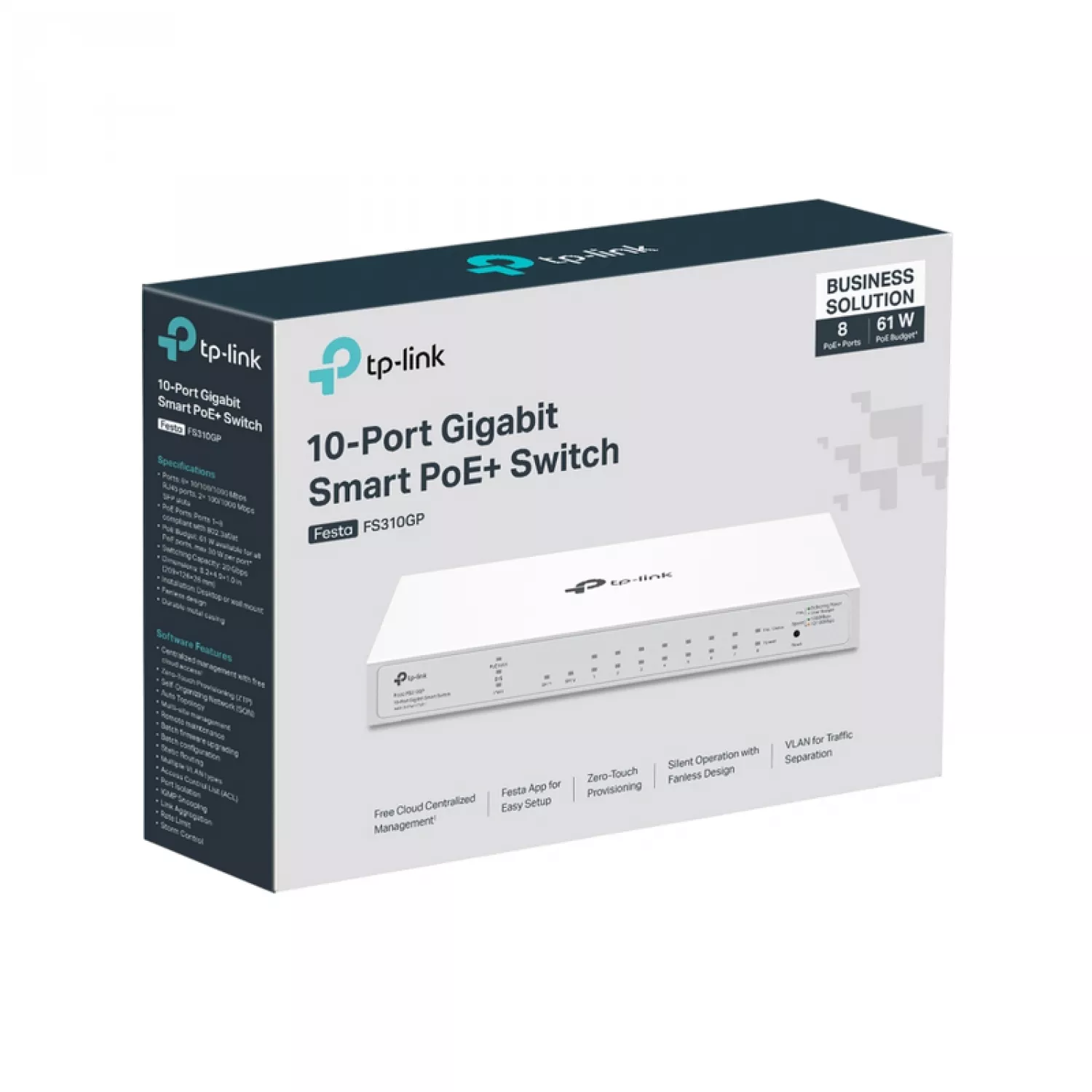 10-port 10/100/1000Mbps PoE+ Smart Switch TP-LINK "Festa FS310GP", 8xPoE+ Ports, 61W Budget, 2xSFP, Steel Case |