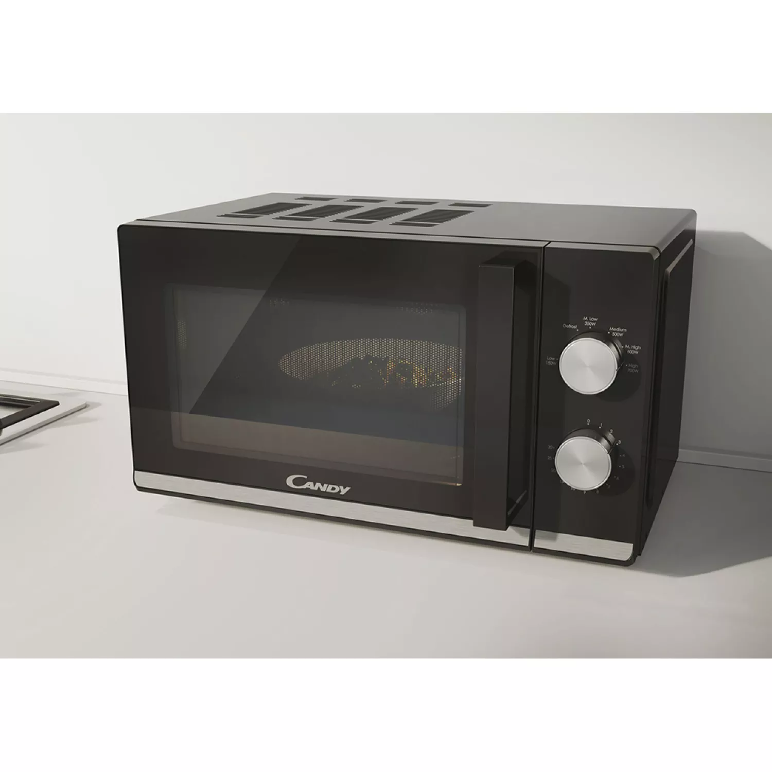 Cuptor cu microunde candy cmw20tnmb, 20 l, 700 w, 6 trepte putere, control mecanic, negru