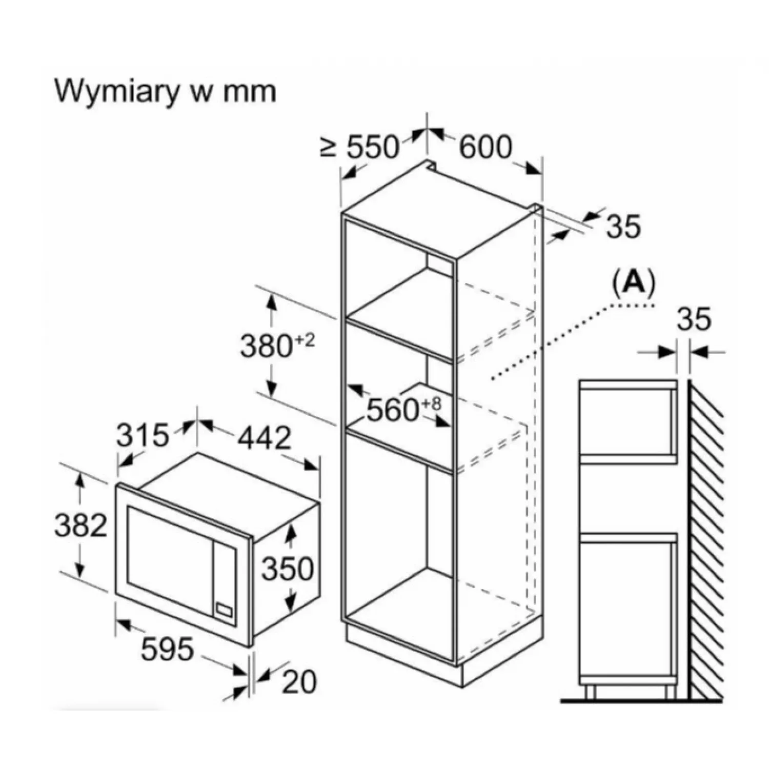 Cuptor cu microunde incorporabil bosch bel623mb3, 800 w, 20 l