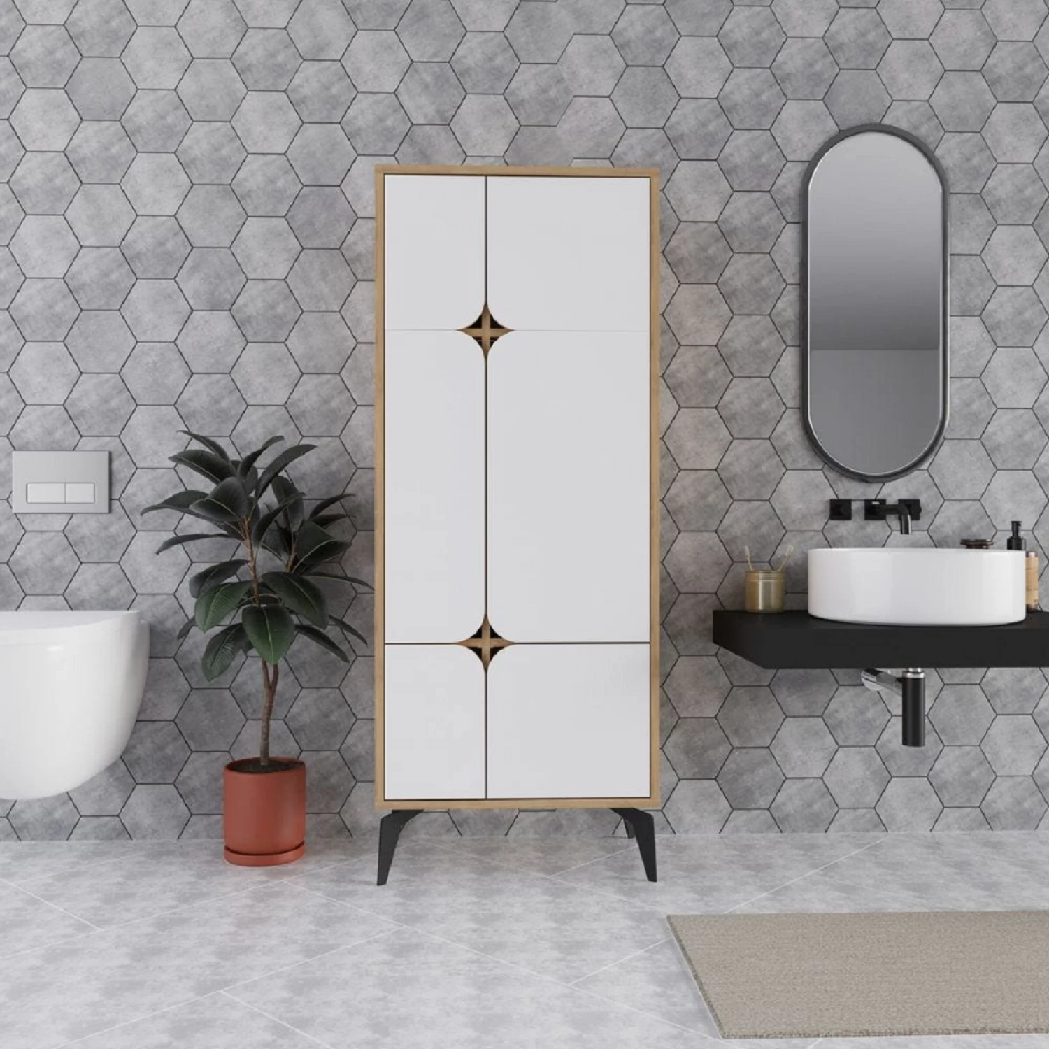 Caracteristici pentru Dulap înalt MLAND SPARK MULTIPURPOSE CABINET - OAK - WHITE, Alb, Stejar, 151x35.6x60