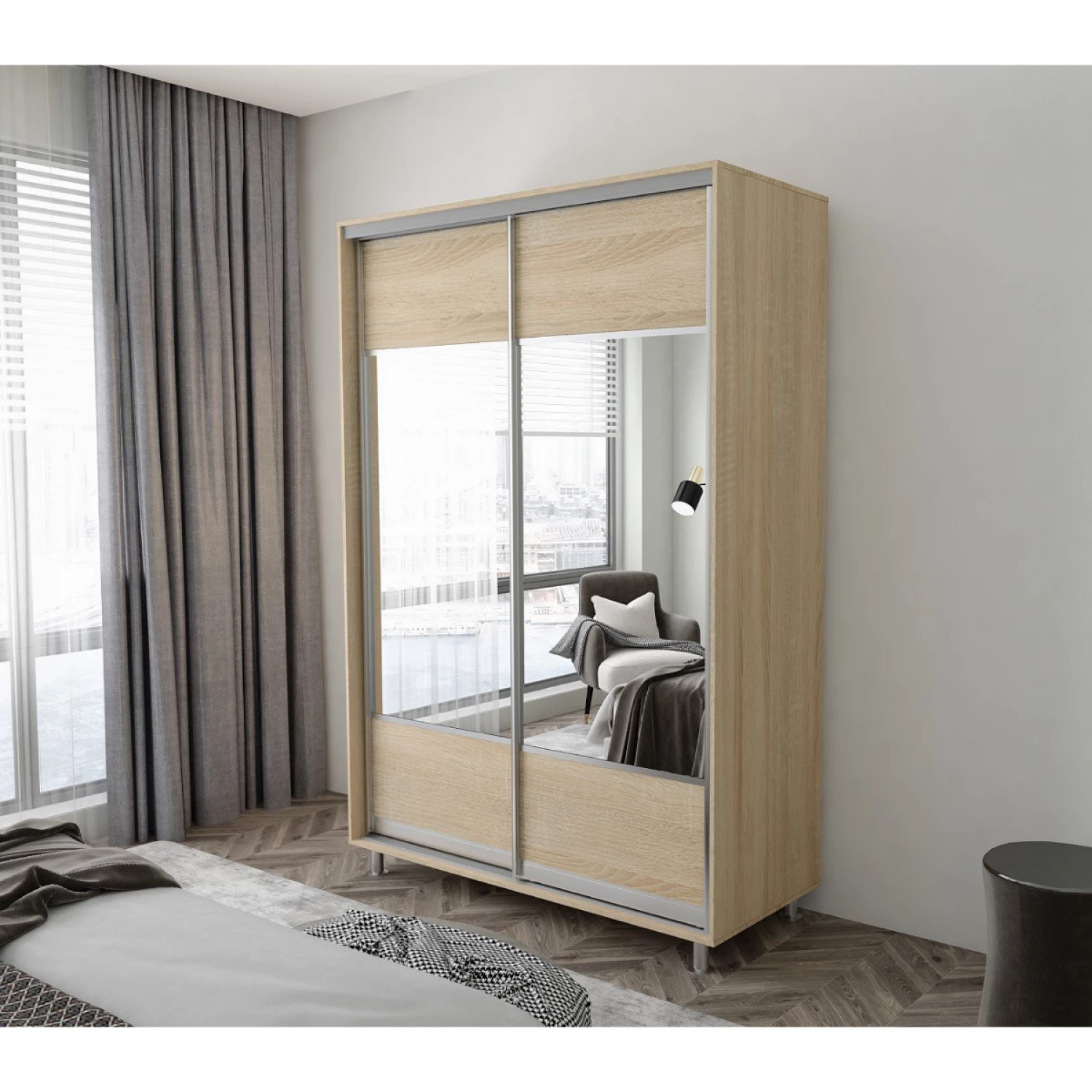 Dulap cu usi glisante mobildor aron k1 1400x600x2200, stejar sonoma