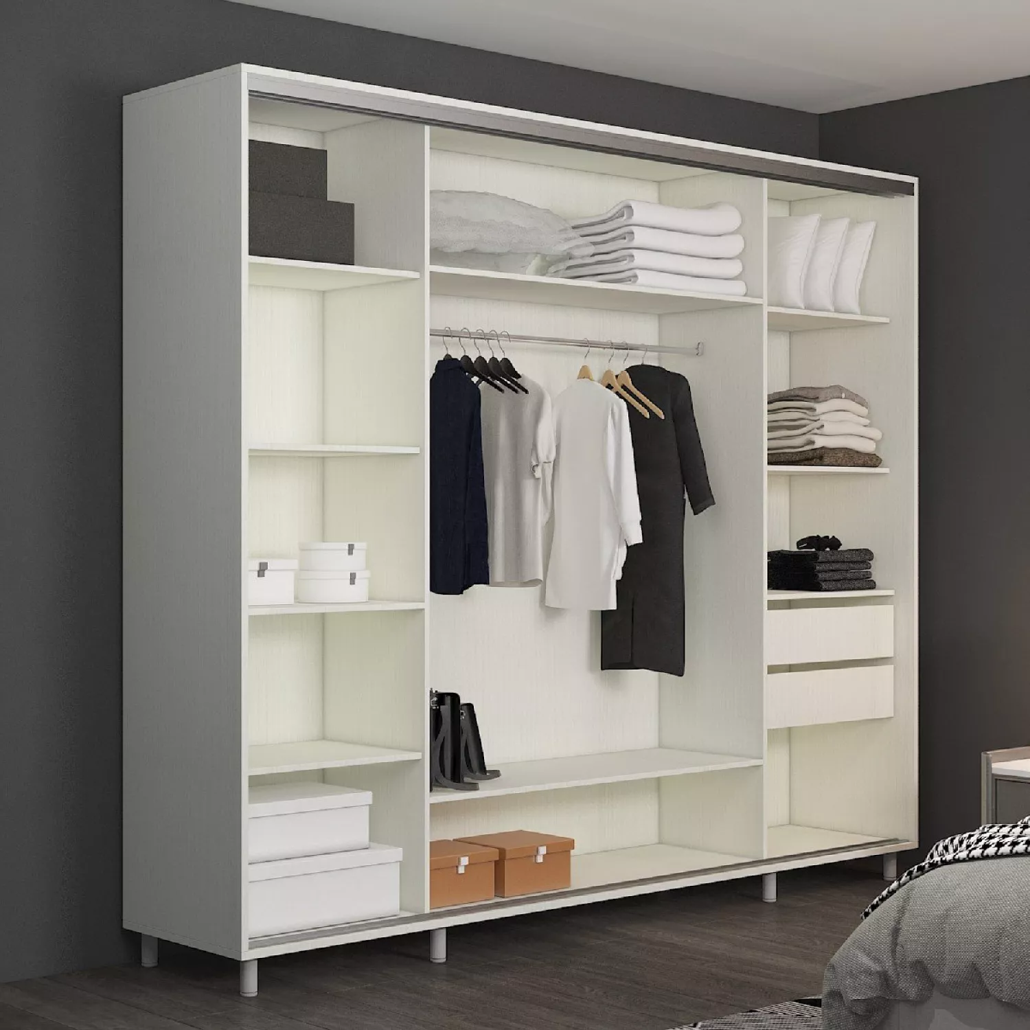 Dulap cu usi glisante mobildor aron - uși k3 240x60x220, alb briliant