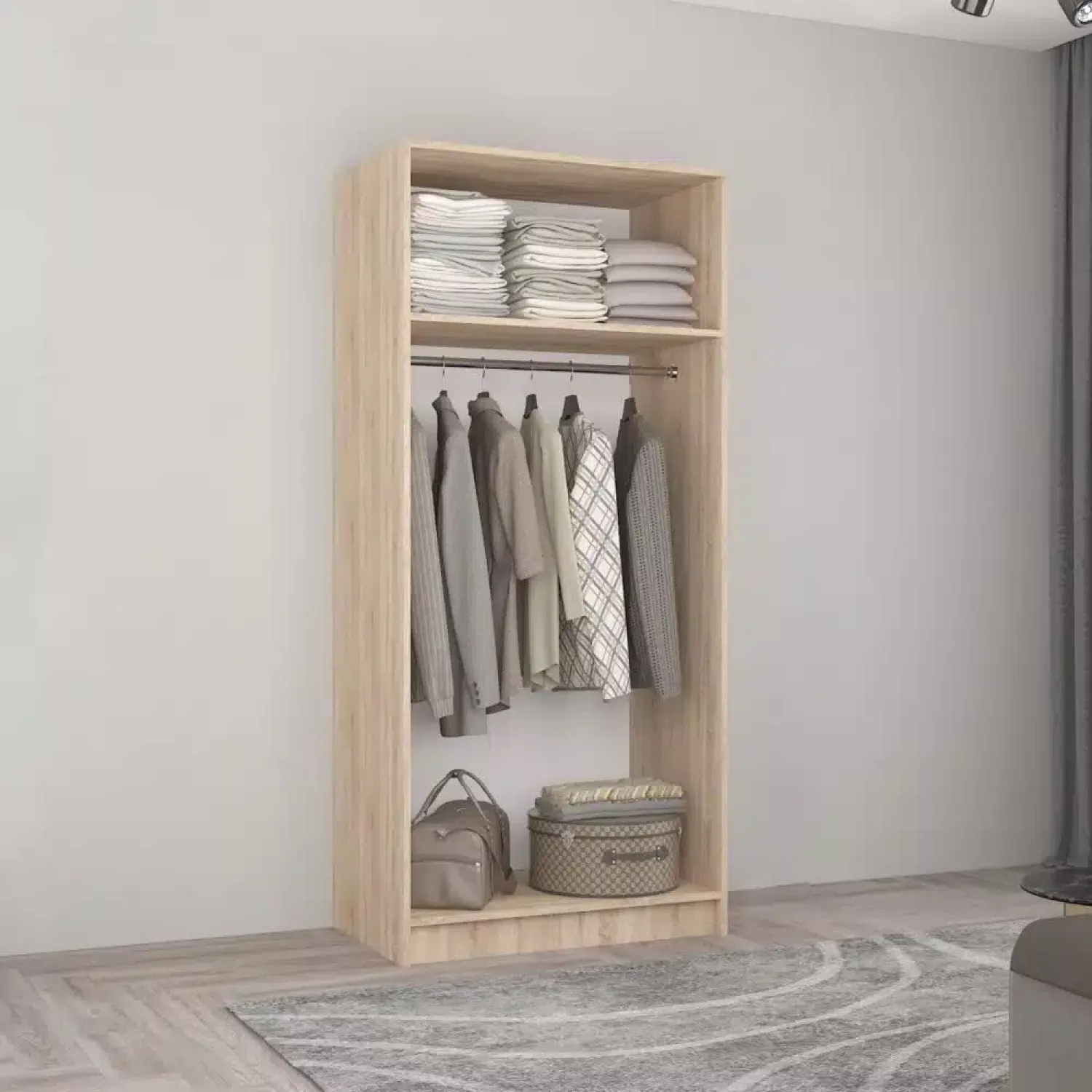 Dulap Smart-Home 0.80x0.56x2.0H m. cu bară p/u umerașe Sonoma/Alb