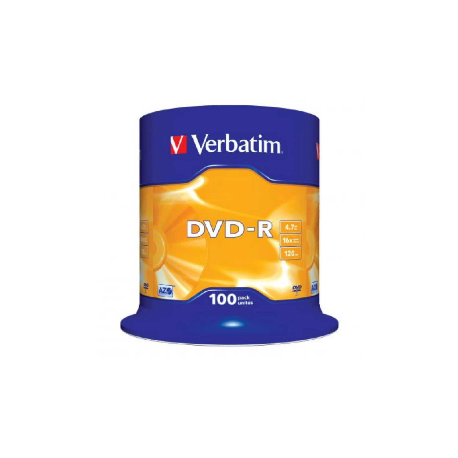 Dvd disc verbatim datalifeplus dvd-r azo 4.7gb, 16x matt silver surfac - spindle 100pcs