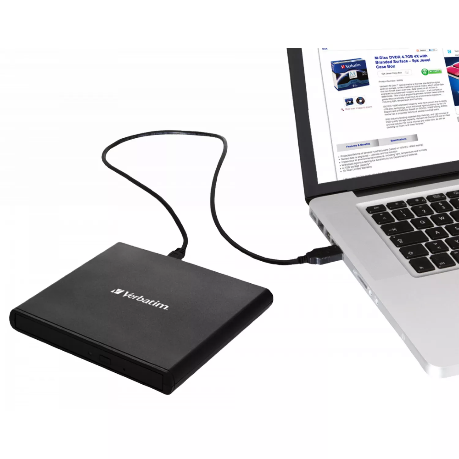 Dvd extern verbatim 53504 light version, 14mm, super-multi cdr/rw +24x/-24x, dvdr+8x/-8x, rw+6x/-6x, dl+6x, ram 5x, minidvd, m-disc, usb2.0, 2xusb ports needed, black, retail (53504)