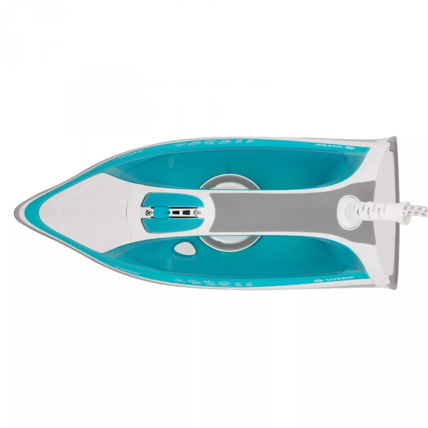 Caracteristici pentru Fier de calcat VITEK VT-1264 WHITE, Talpa ceramica, 2400 W, Jet de abur 135 g, min, 350 ml, Albastru deschis, Alb