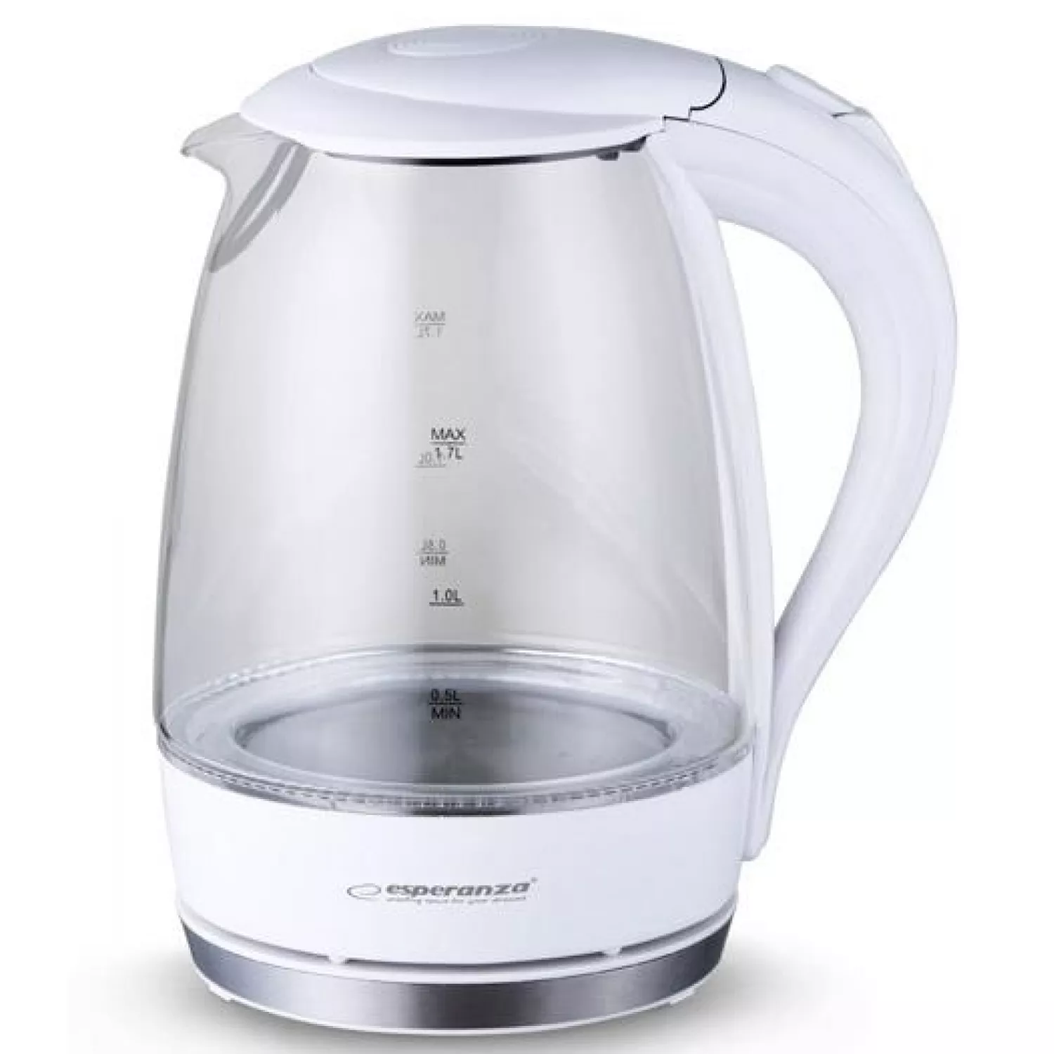 Ceainic electric esperanza salto angel ekk011w, 1.7 l, 2200 w, sticla, plastic, transparent, alb