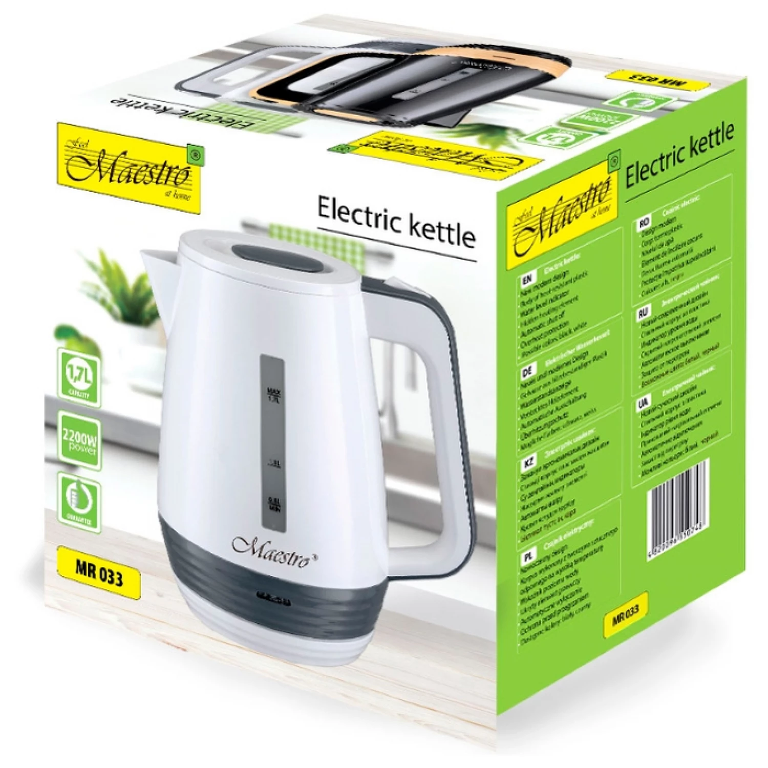 Ceainic electric maestro mr -033, 1.7 l, 2200 w, plastic, alb
