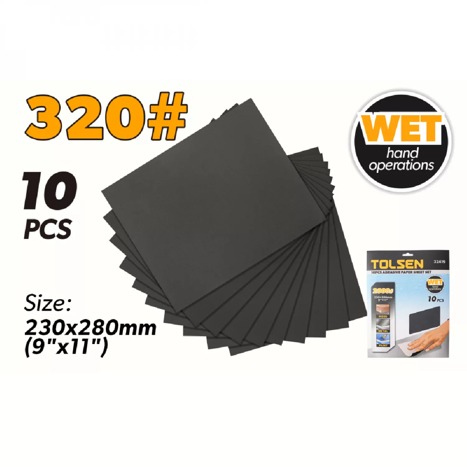 Caracteristici pentru Foi abrazive Tolsen SET 10 FOI ABRAZIVE 230X280MM #320