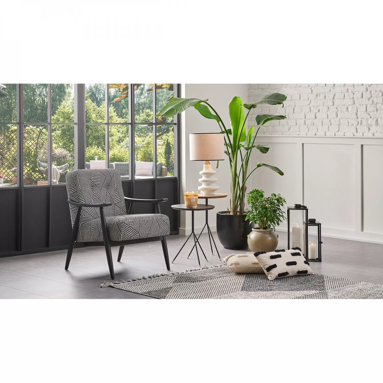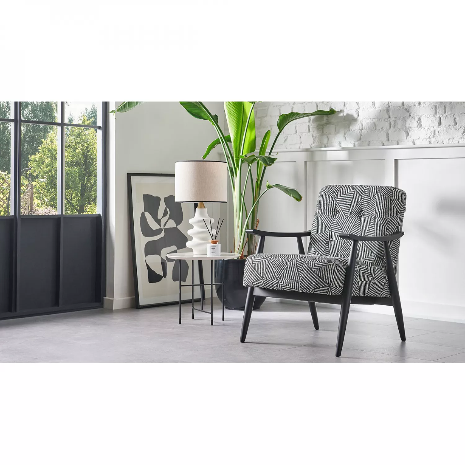 Fotoliu dogtas nadia dekostoff black/white flowers
