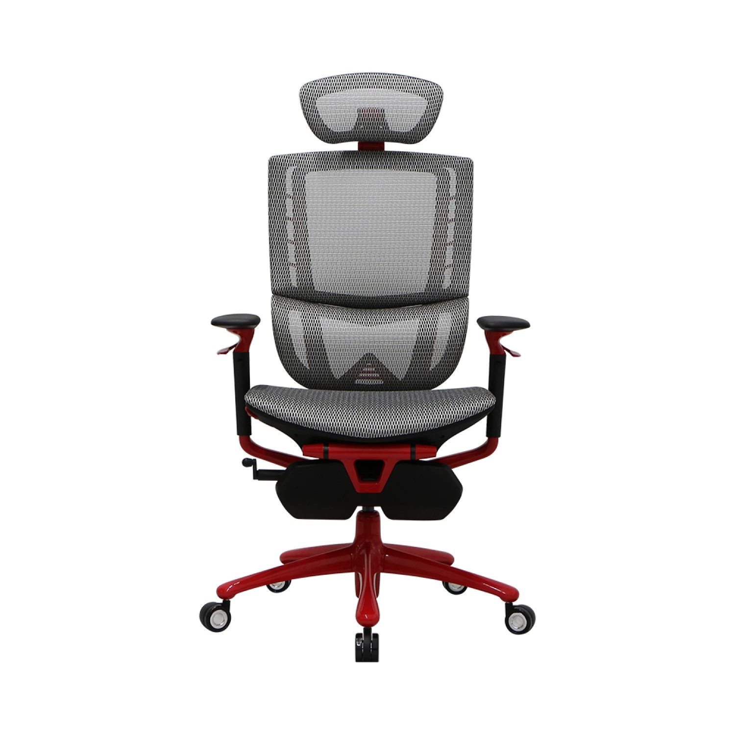 Gaming Chair 1STPLAYER ERGO PLAY White&Red, High tech reinforced polyester material mesh, Reinforced steel frame, 3D armrest, soft PU-cushioned footrest, aluminum outer frame, 4 class Gaslift, 60mm noiseless PU caster, Tilt Angle Adjuster:95°-120°,1 |