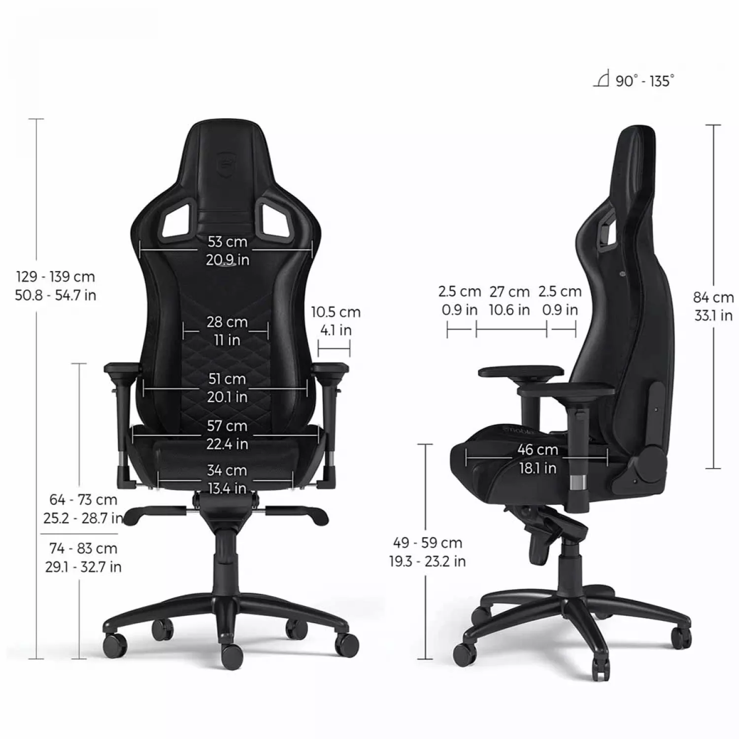Caracteristici pentru Fotoliu Gaming NobleChairs Epic NBL-PU-BLA-002 Black/Black, Piele artificiala, Gazlift, 120 kg, 165-185 cm