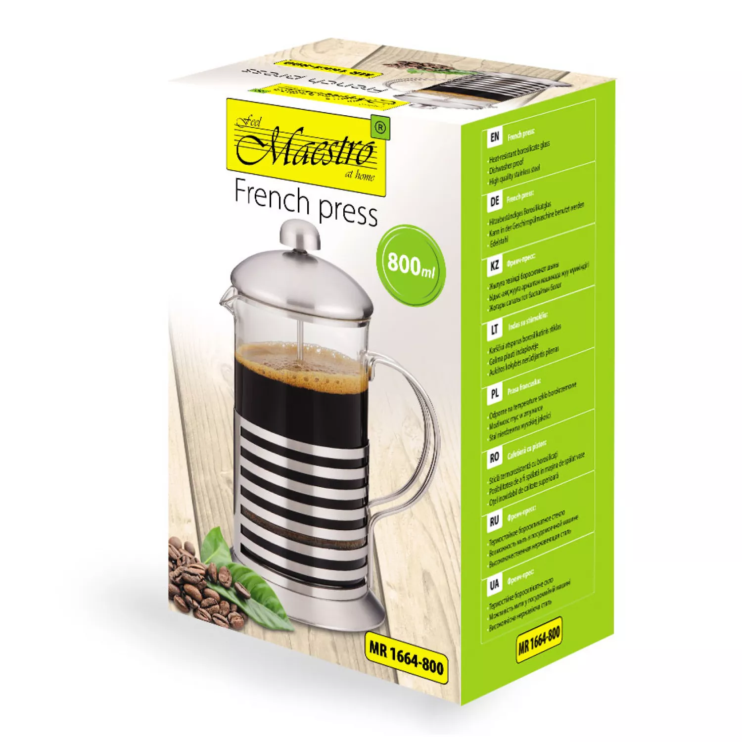 French-press 0.8 l, Inox, Sticla Maestro MR-1662-800