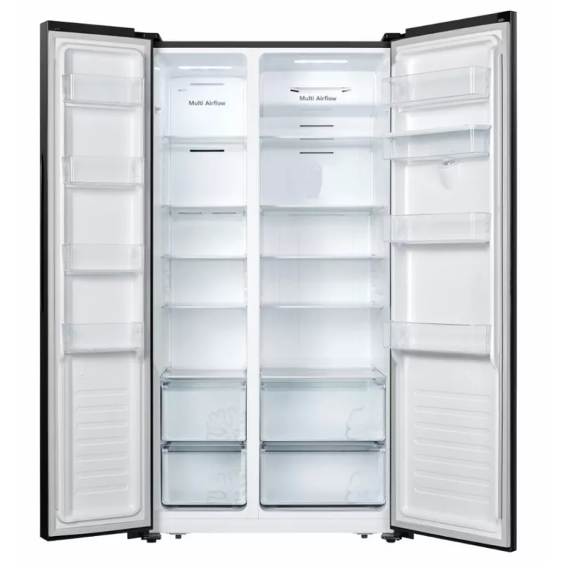 Холодильник Side-By-Side Heinner HSBS-HS519NFBKWDE++ 519л=334+185 | Full NoFrost | Е | Inverter | Display touch | Dispenser water Черный |