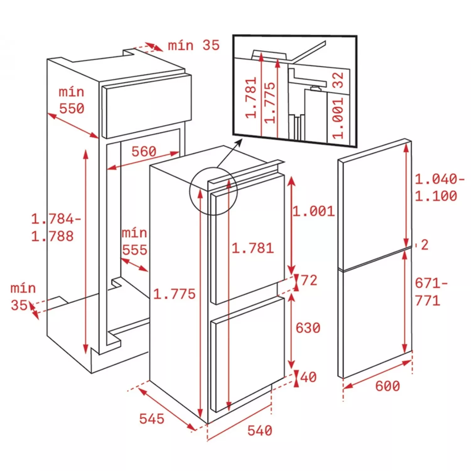 Caracteristici pentru Frigider incorporabil TEKA RBF 73340 FI EU, 271 l, Dezghetare manuala, Dezghetare prin picurare, 177.5 сm, Inox, G