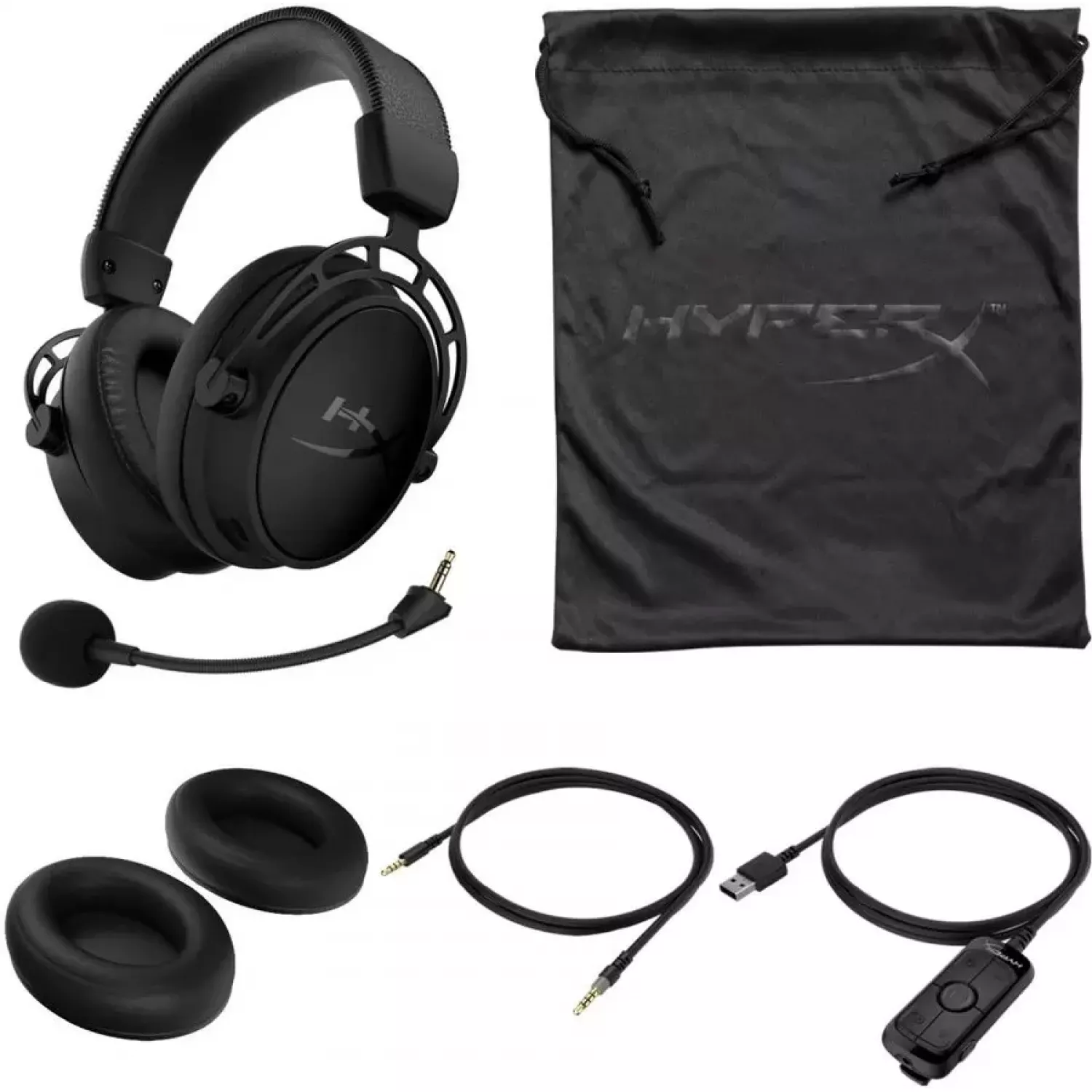Cloud Alpha S Blackout, Black, Solid aluminium build, Microphone: detachable, Frequency response: 13Hz–27,000 Hz, Detachable headset braided cable length:1m+2m extension, Dual Chamber Drivers, 3.5 jack, Virtual 7.1 surround sound