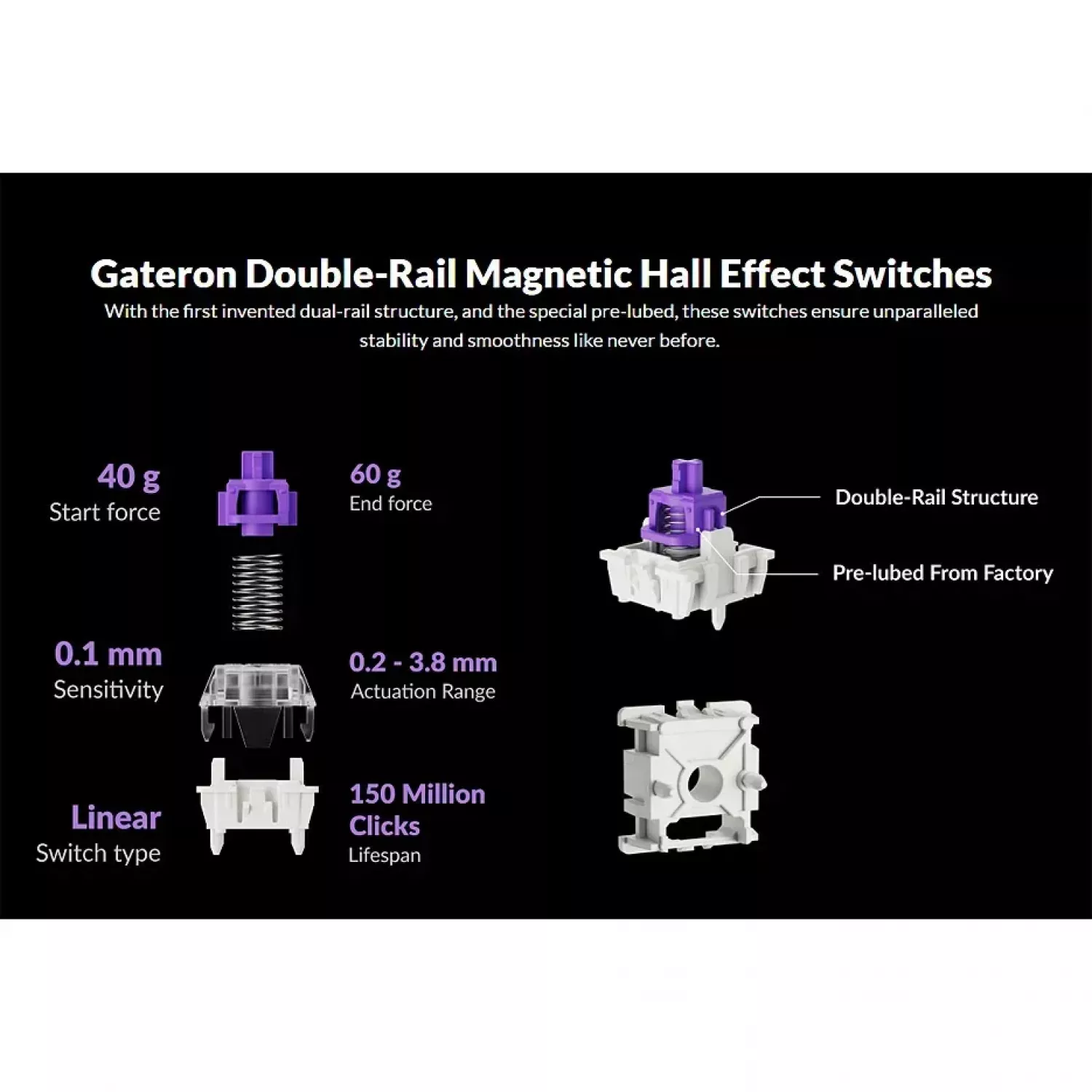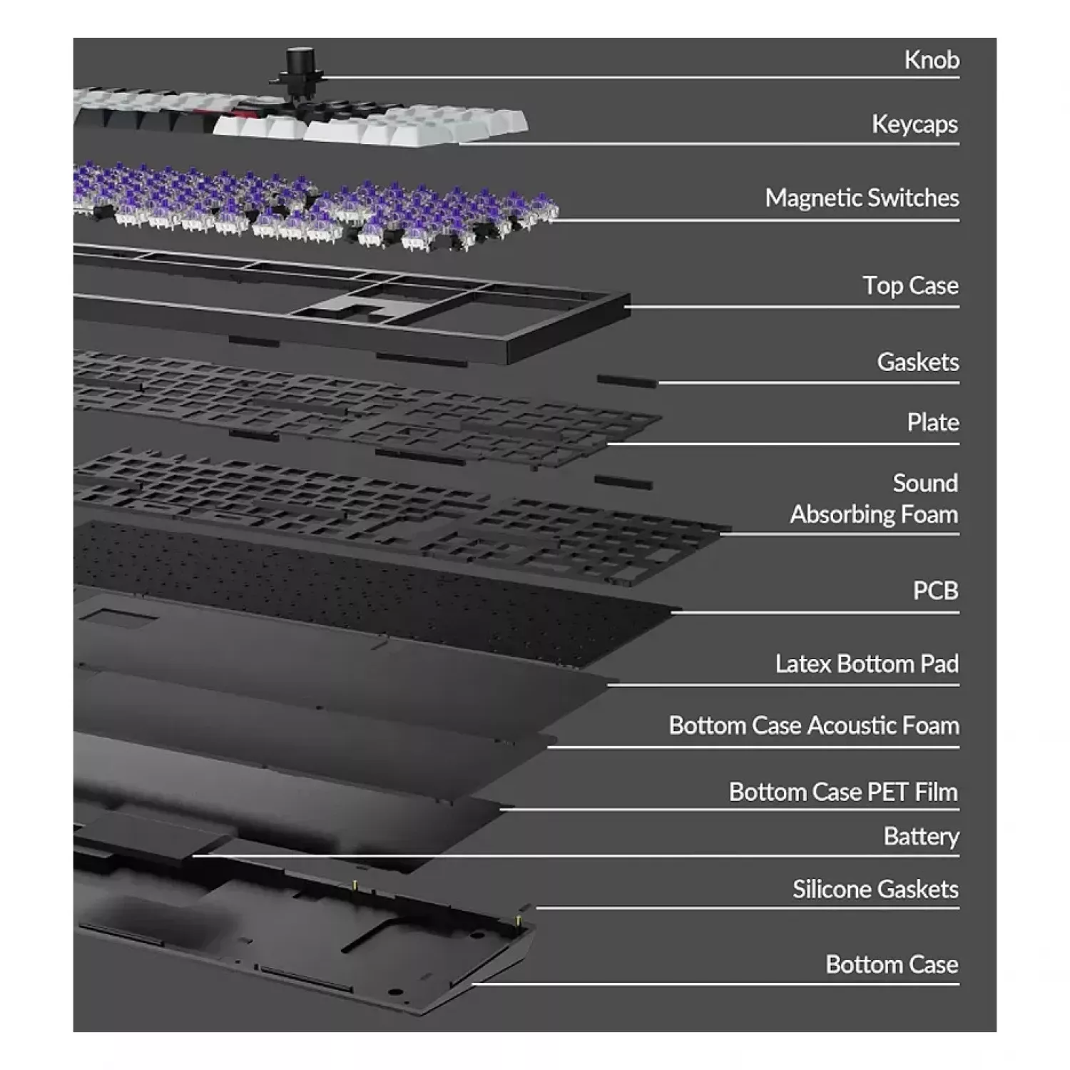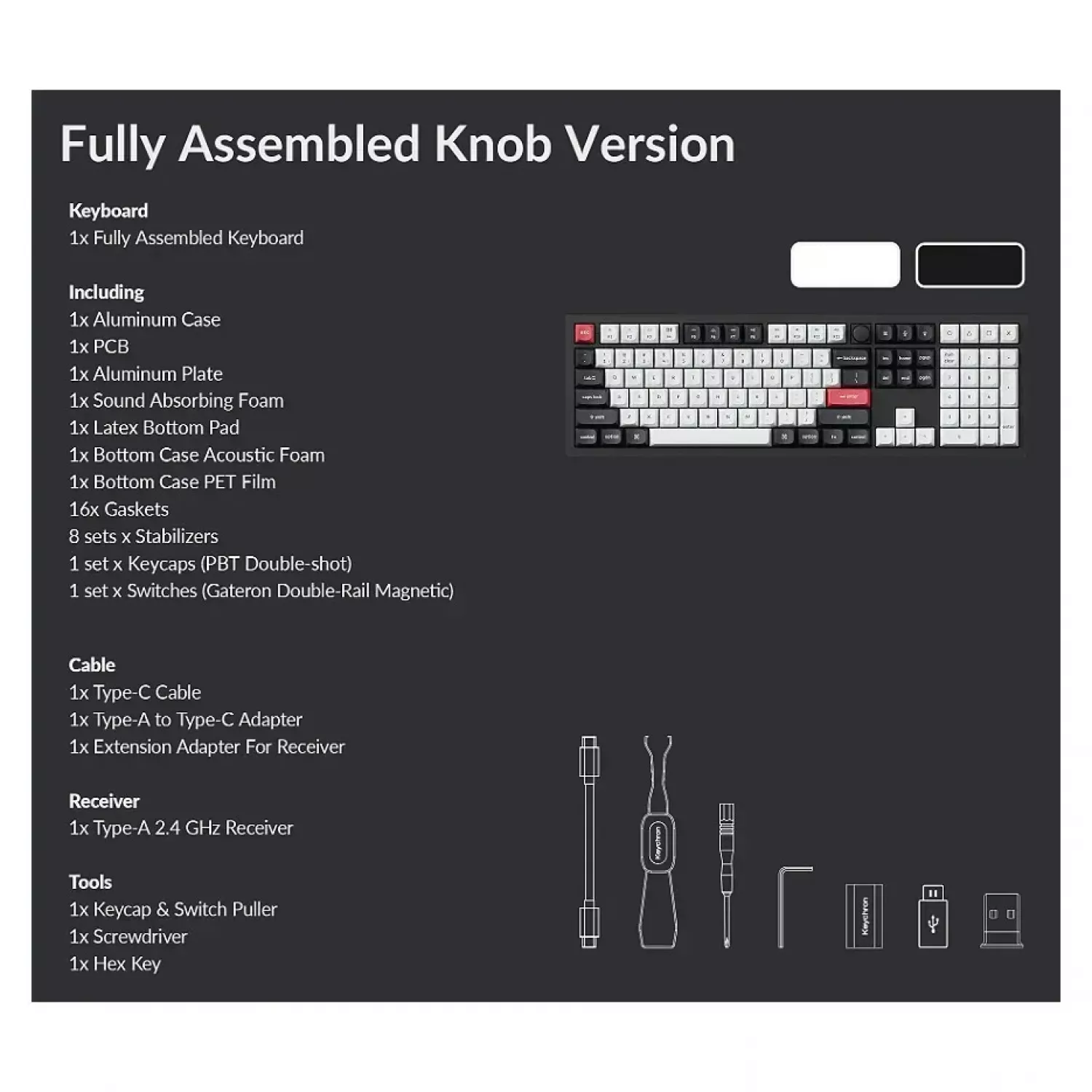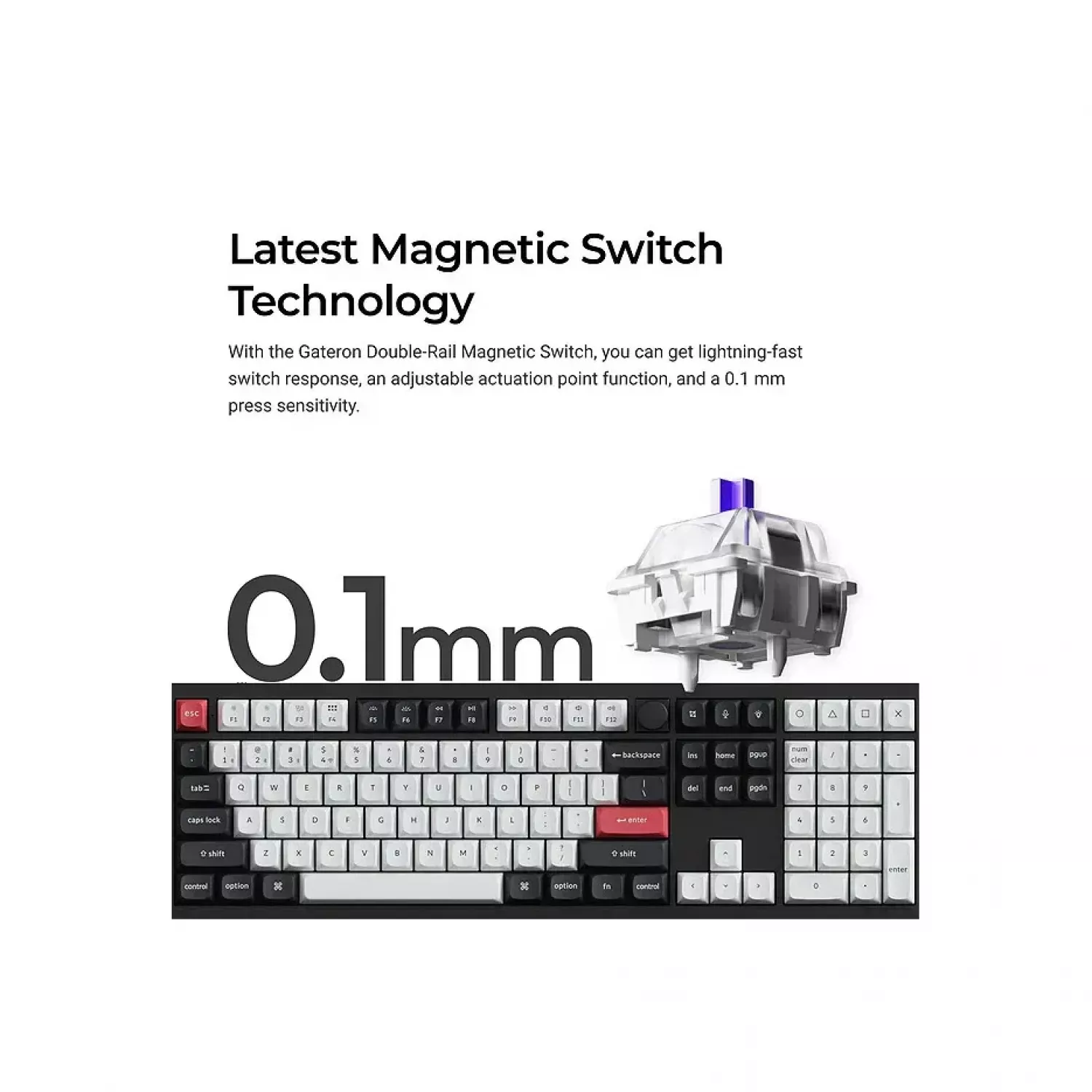 Caracteristici pentru Gaming keyboard Keychron Keychron Q6 HE QMK Wireless Custom Full-Metal Mechanical Keyboard (Q6H-M1), Carbon Black, Full Size layout, Knob, RGB Backlight, Gateron Double-Rail Magnetic Nebula Switch, Hot-Swap, 2.4GHz&Bluetooth, USB Type-C, gamer (tastatura/клавиатура)