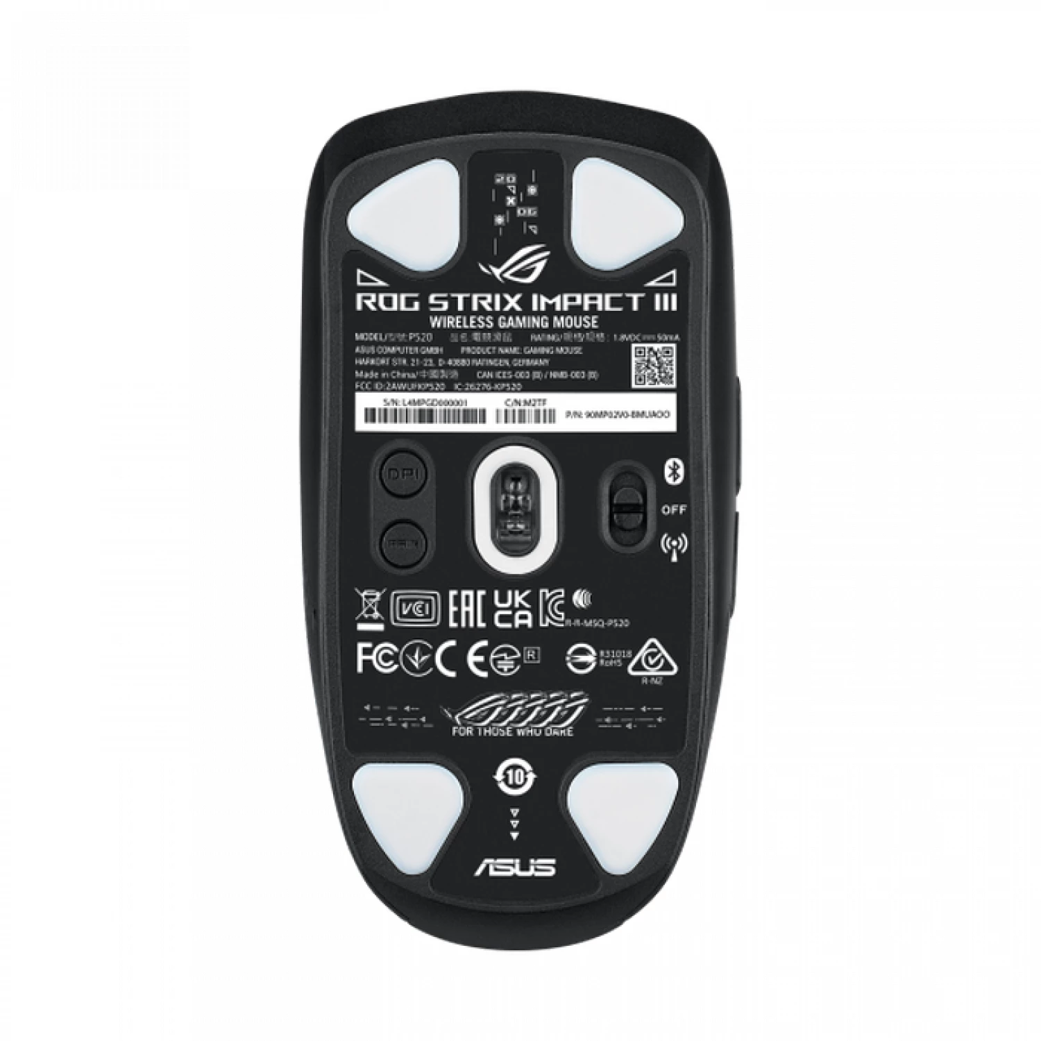 Gaming mouse asus gaming wireless mouse asus rog strix impact iii, 36k dpi, 6 buttons, 650ips, 50g, 57g, ergonomic, push-fit socket, rgb, aa or aaa, 2.4ghz+bt, black