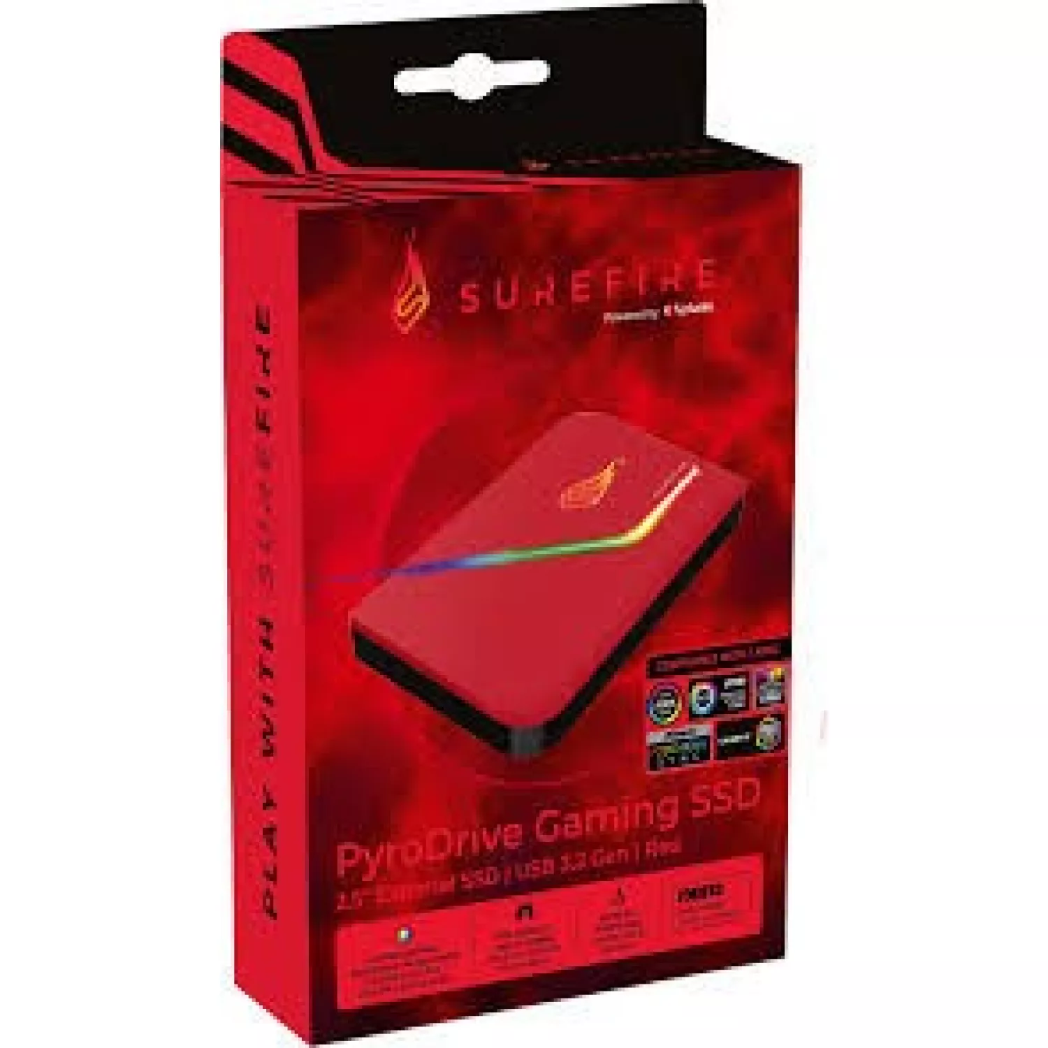 2.5" EXTERNAL SSD 2.0TB SUREFIRE PYRODRIVE GAMING SSD (BY ), USB 3.2 GEN 1, RED, RGB LIGHTING, TRANSFER SPEED: UP TO 5GBPS, USB-C ADAPTER INCLUDED, NERO BACKUP SOFTWARE |