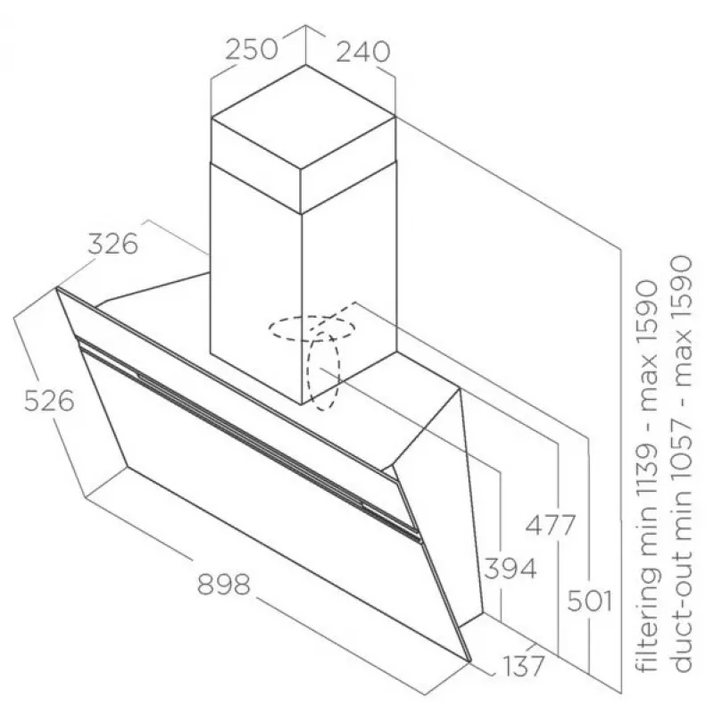 Caracteristici pentru Hota Elica STRIPE URBAN CAST IRON, 1200 m³/h, 1 motor, 89.8 cm, Filtru din aluminiu absorbant de grasimi, Negru