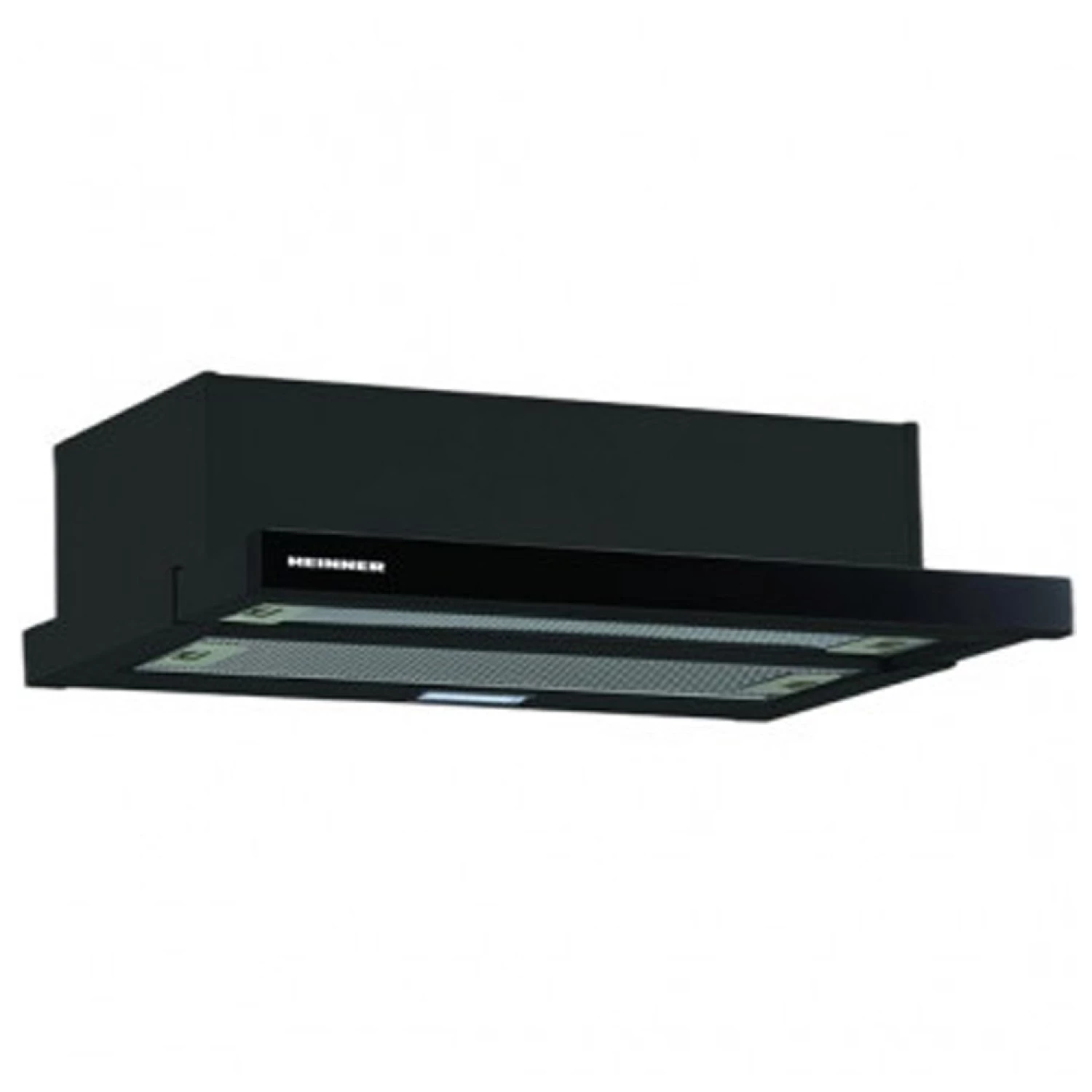 Встроенная вытяжка (Телескопическая) Heinner HTCH-490GBK 60 см | до 413.5 м3/ч | 2 режима скорости | Светодиодная подсветка: 1 x 2 Вт | 2 алюминиевых фильтра черн. стекло