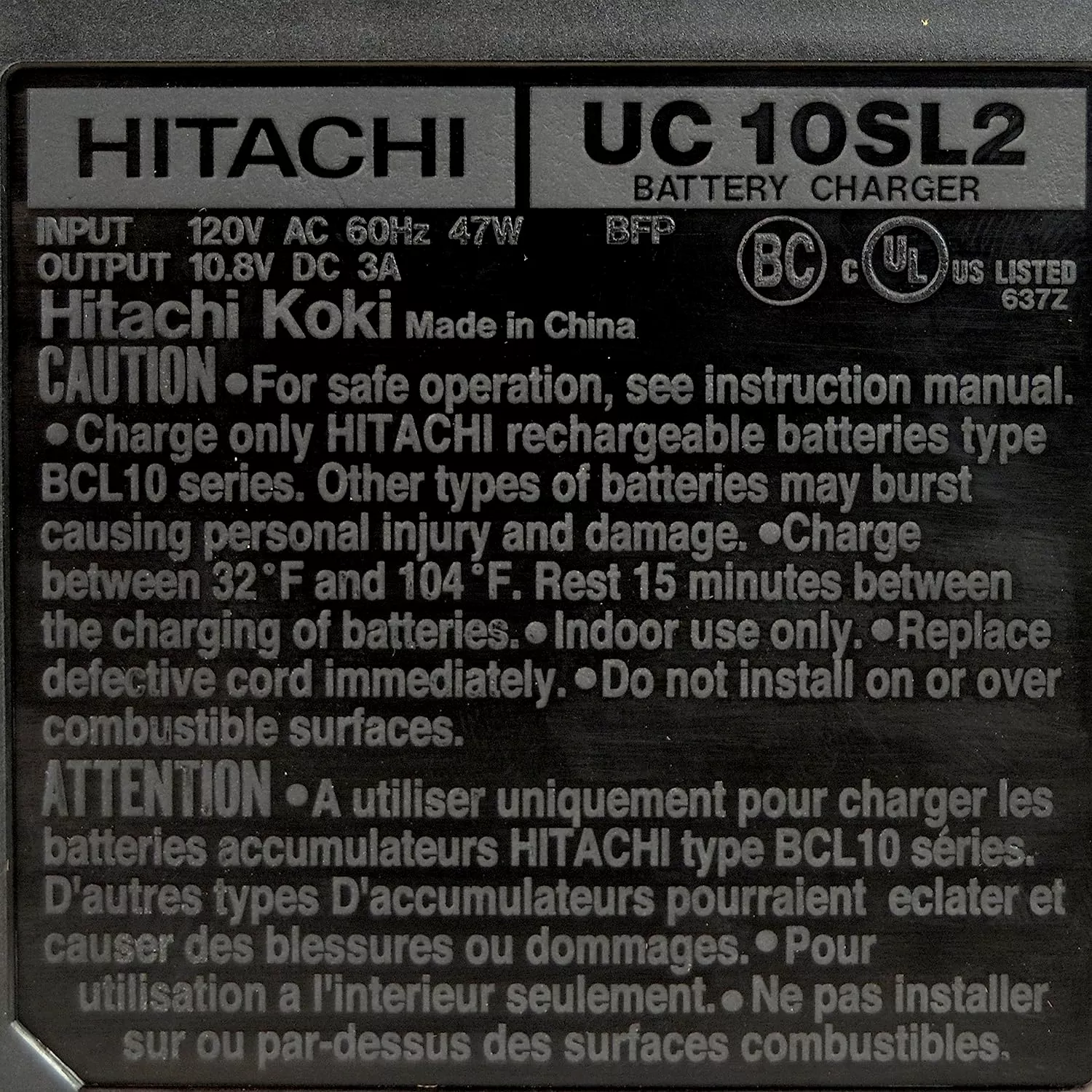 Caracteristici pentru Incarcator HITACHI UC10SL2T0Z 10,8V