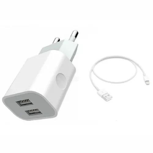 WALL CHARGER WITH CABLE USB TO LIGHTNING SINGLE DUAL 5A YIYUE, WHITE |