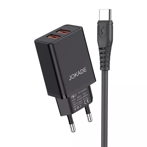 WALL CHARGER WITH CABLE USB TO TYPE-C DUAL PORT 5A YIYUE, BLACK |