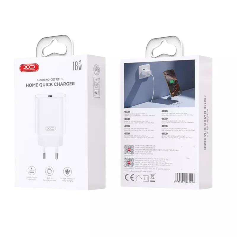Caracteristici pentru Incarcator XO Wall Charger XO, 1USB, QC18W, CE33, White