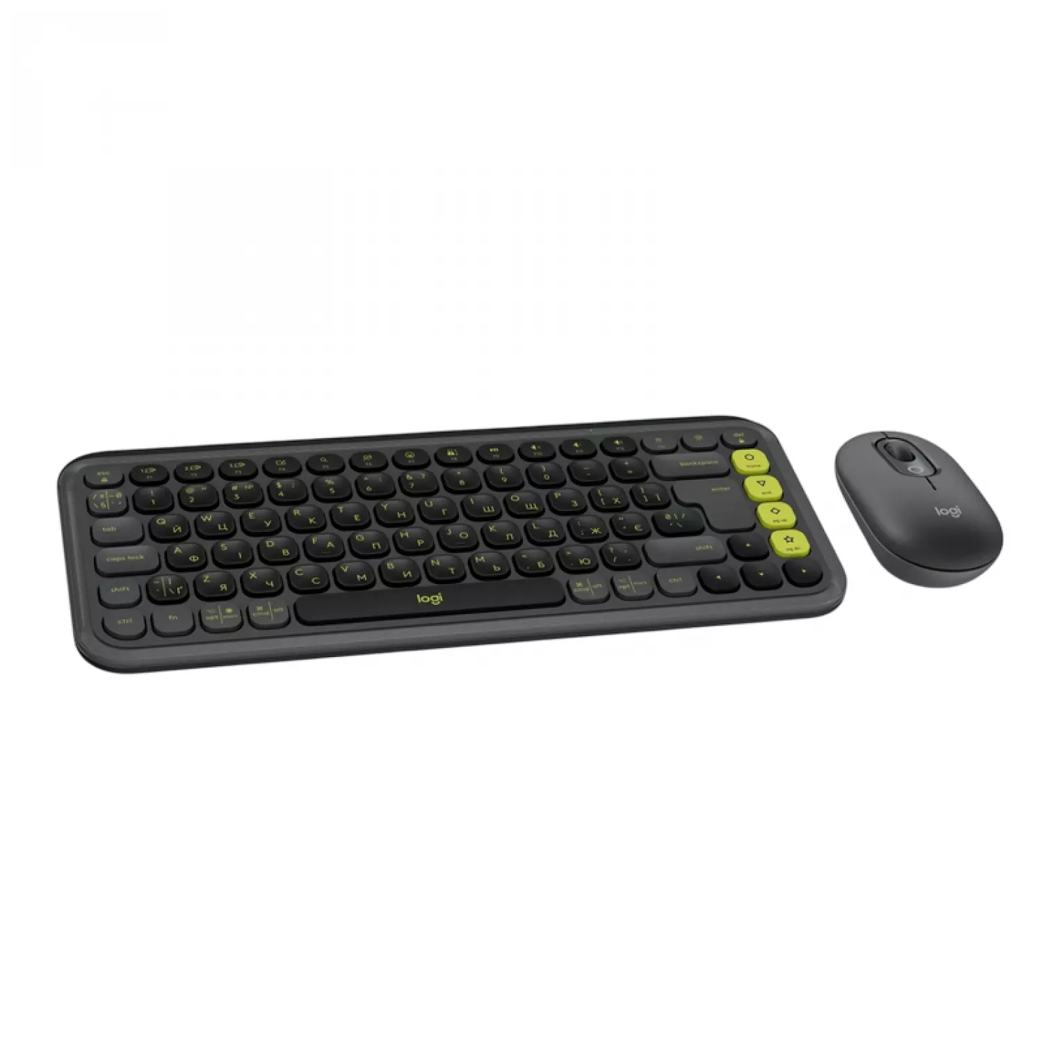 Caracteristici pentru Kit (keyboard+mouse) LOGITECH Wireless Keyboard & Mouse Logitech POP ICON, Compact design, Low-profile keys, 4000dpi, 3 buttons, 2xAAA/1xAA, Bluetooth, EN/UA, Graphite/Green