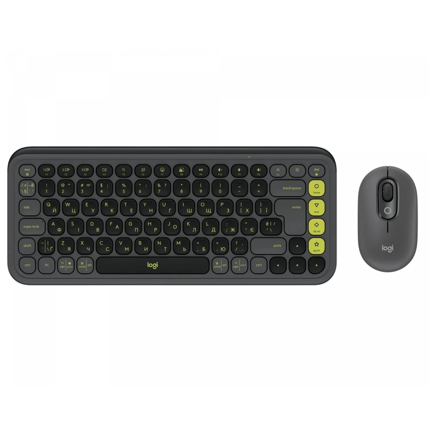 Wireless Keyboard & Mouse Logitech POP ICON, Compact design, Low-profile keys, 4000dpi, 3 buttons, 2xAAA/1xAA, Bluetooth, EN/UA, Graphite/Green |