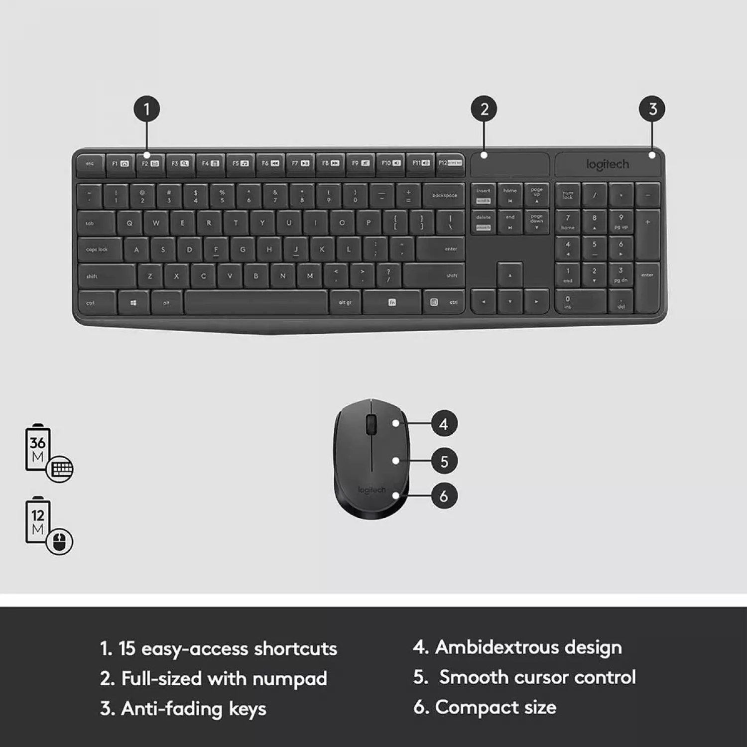 WIRELESS KEYBOARD & MOUSE MK235, LOW-PROFILE, SPILL-RESISTANT, FN KEY, EN, GREY