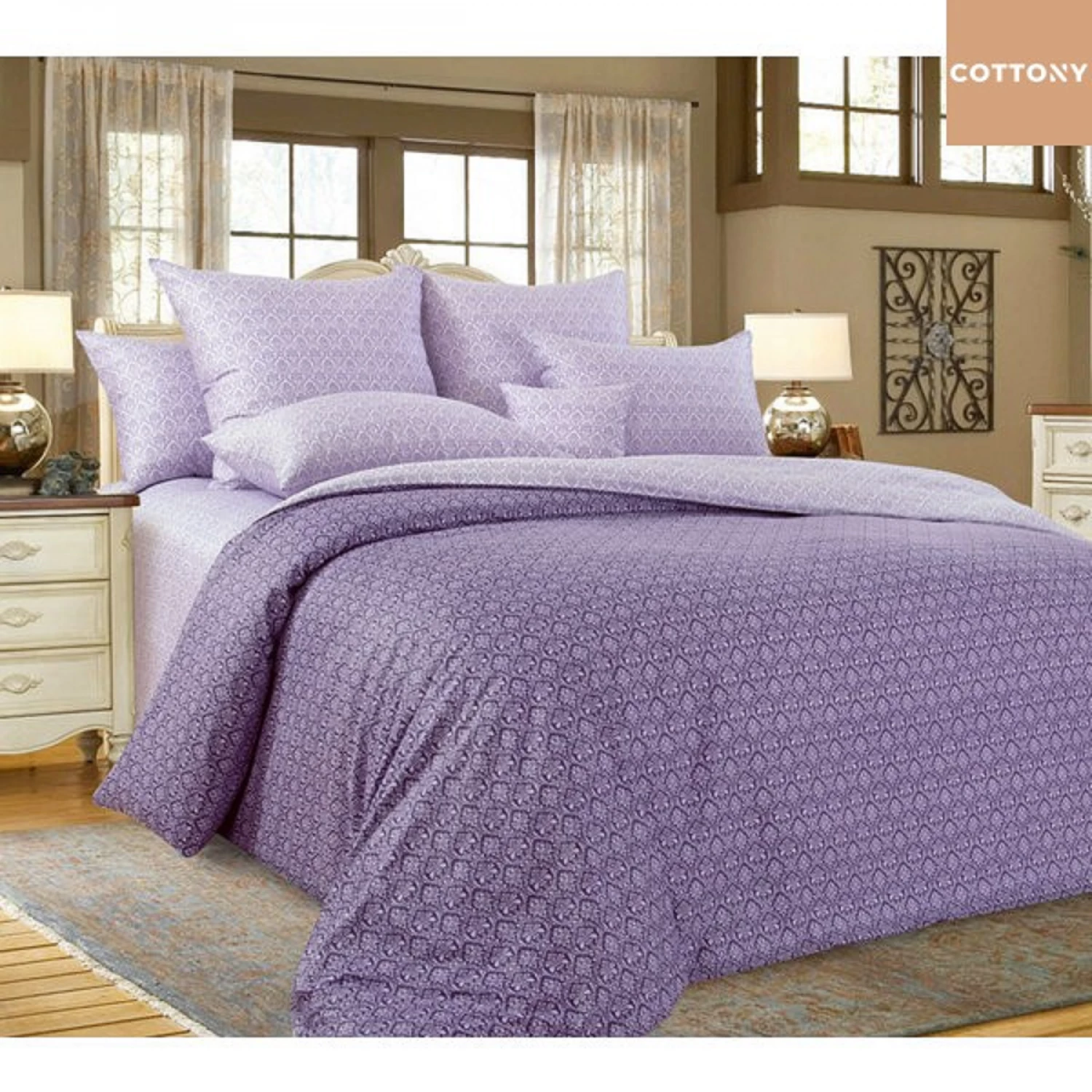 Lenjerie de pat cottony slpsl stripe satin, 2 persoane euro, satin, violet