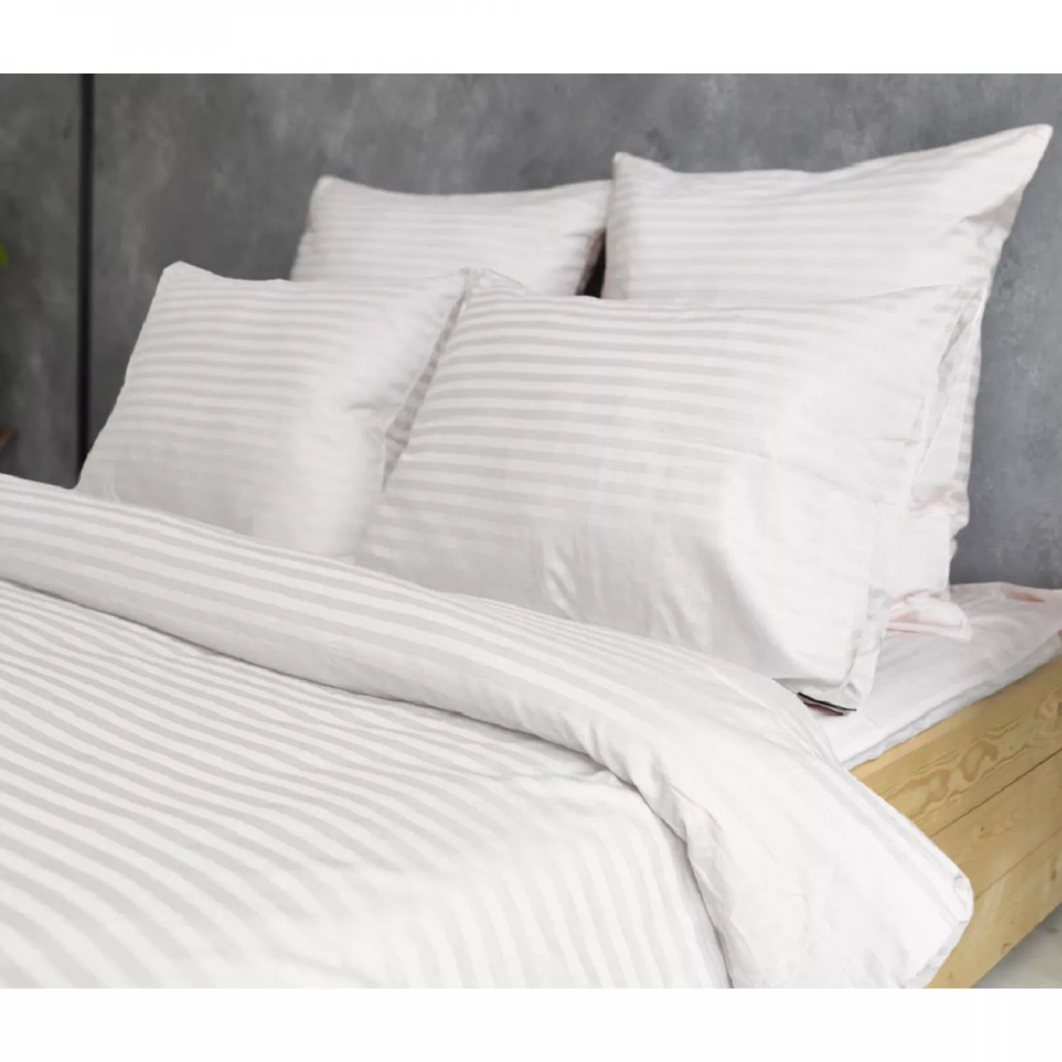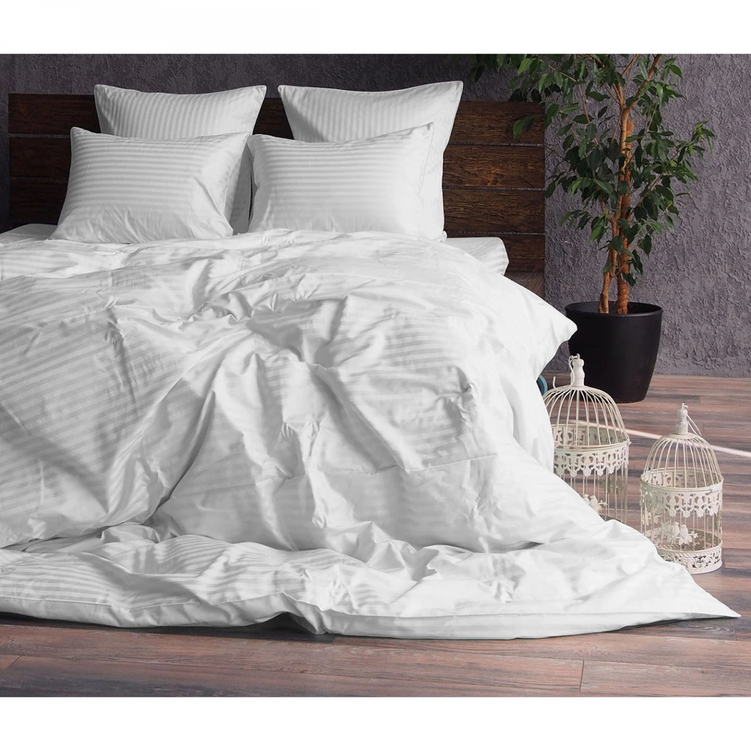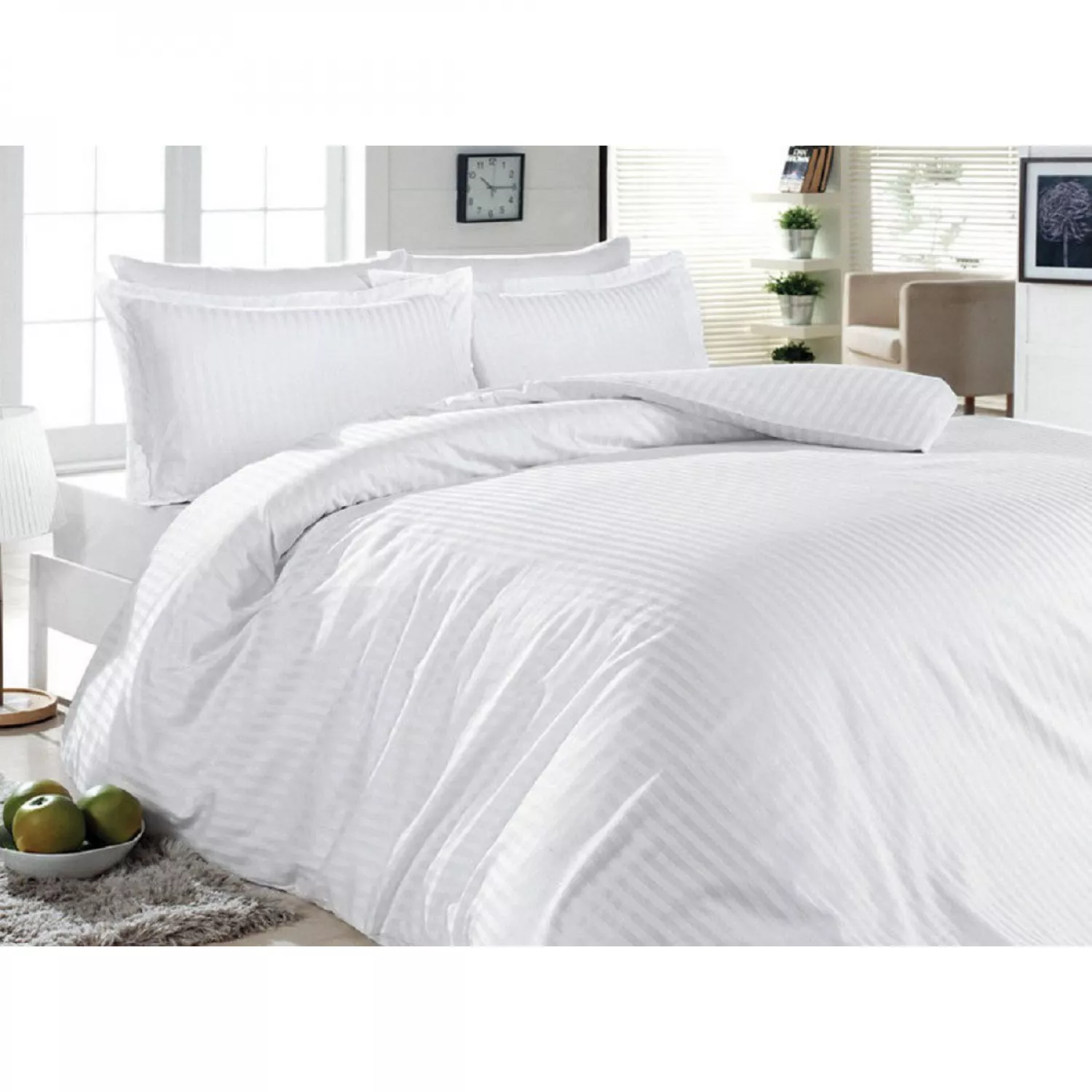 Lenjerie de pat ctextil group set satinalb 2.2/50/70, 2 persoane euro, straipsatin, alb