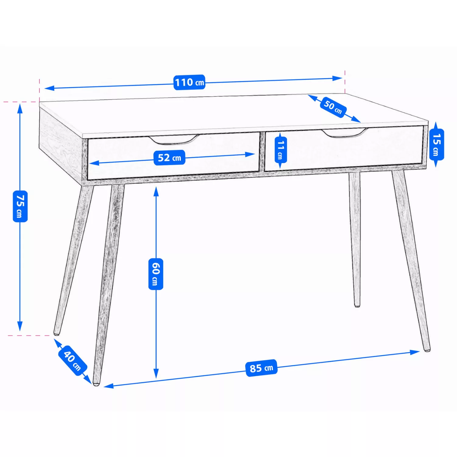 Caracteristici pentru Masa de birou Nex Home MASA DE BIROU CU 2 SERTARE, JUMI, 110X50X75 CM, ALB/STEJAR
